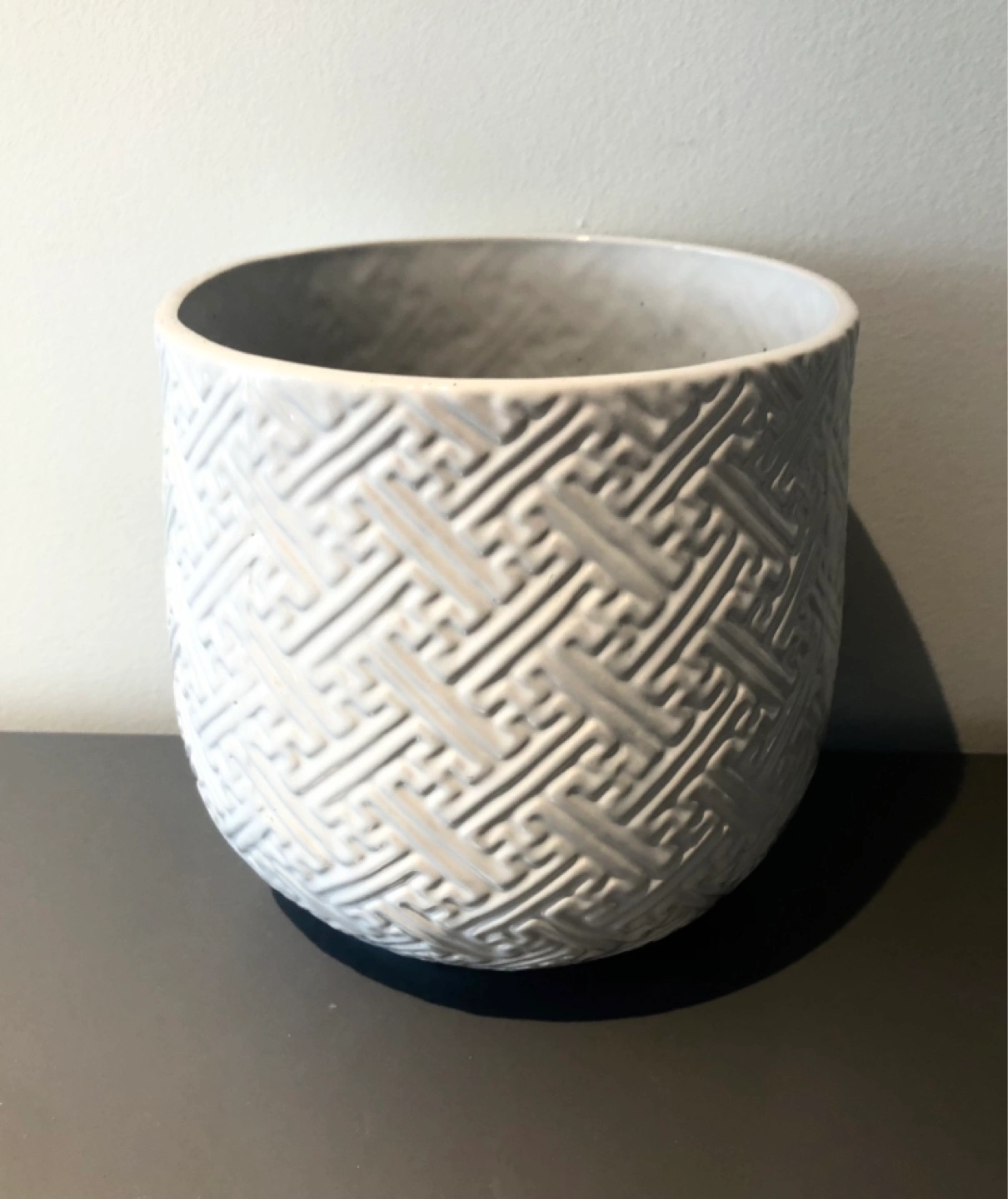 White Ceramic Planter with Geometric Pattern