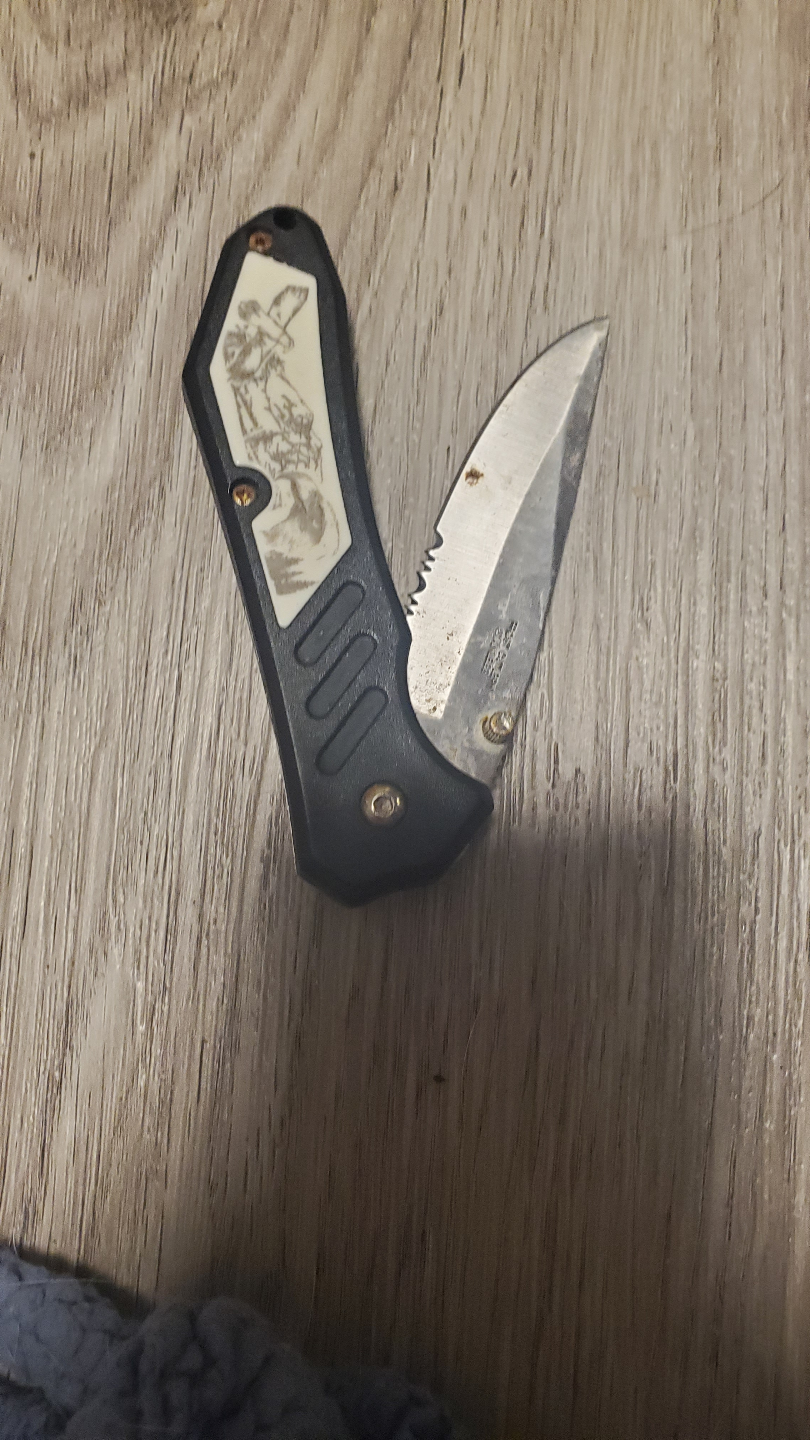 1 / 11 / 1Buy & SellPocket Knife with Engraved HandlePocket Knife with Engraved Handle$5Folding pocket knife. Black handle with engraved image. Partial serration on blade. Used condition. little rusted WHERE TO MEETCheck LocationView MapSELLERverifiedEmilyChristopher-Champlain28019 reviews0 chats·0 favorites·29 viewsSEND CHAT TO SELLERHi Emily! I’m interested in your listing.Hi Emily! I’m interested in your listing.Get the Karrot app to chatSign In to chat