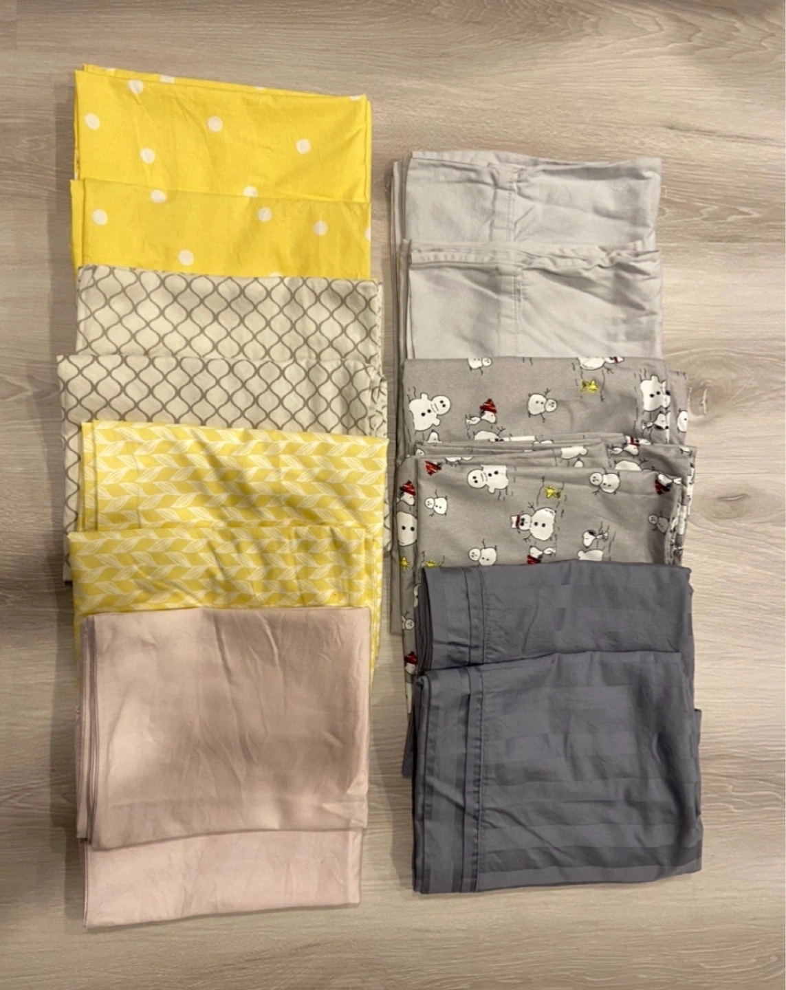 Smoke free pet free home Pick up only. Yonge & Steeles Item brought to driveway 8 standard size pillow cases - left of pic 6 king size pillow cases - right of pic Selling as lot only -14 pillow cases. No rips or stains.