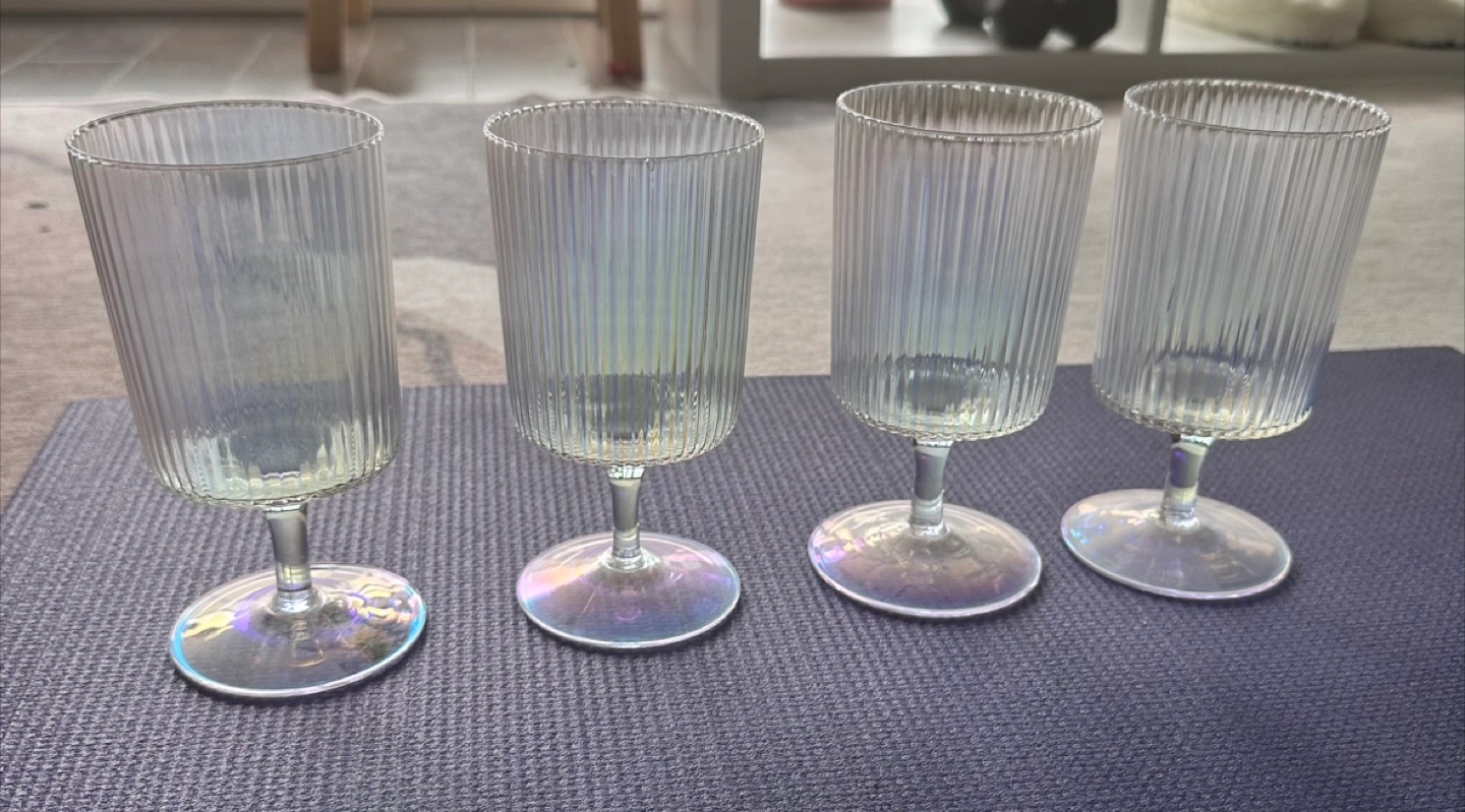 Buy & SellSet of 4 iridescent glassesSet of 4 iridescent glassesFreeFour stemmed glasses. Iridescent finish. Vertical ribbed design. Elegant and stylish. Perfect for parties or everyday use.ConditionNewDimensions11 oz / 325 mlWHERE TO MEETEsplanade/Market stView MapSELLERverifiedFrancescaSt. Lawrence Market29427 reviews3 chats·1 favorites·47 viewsSEND CHAT TO SELLERHi Francesca! I’m interested in your listing.Hi Francesca! I’m interested in your listing.Get the Karrot app to chatSign In to chat