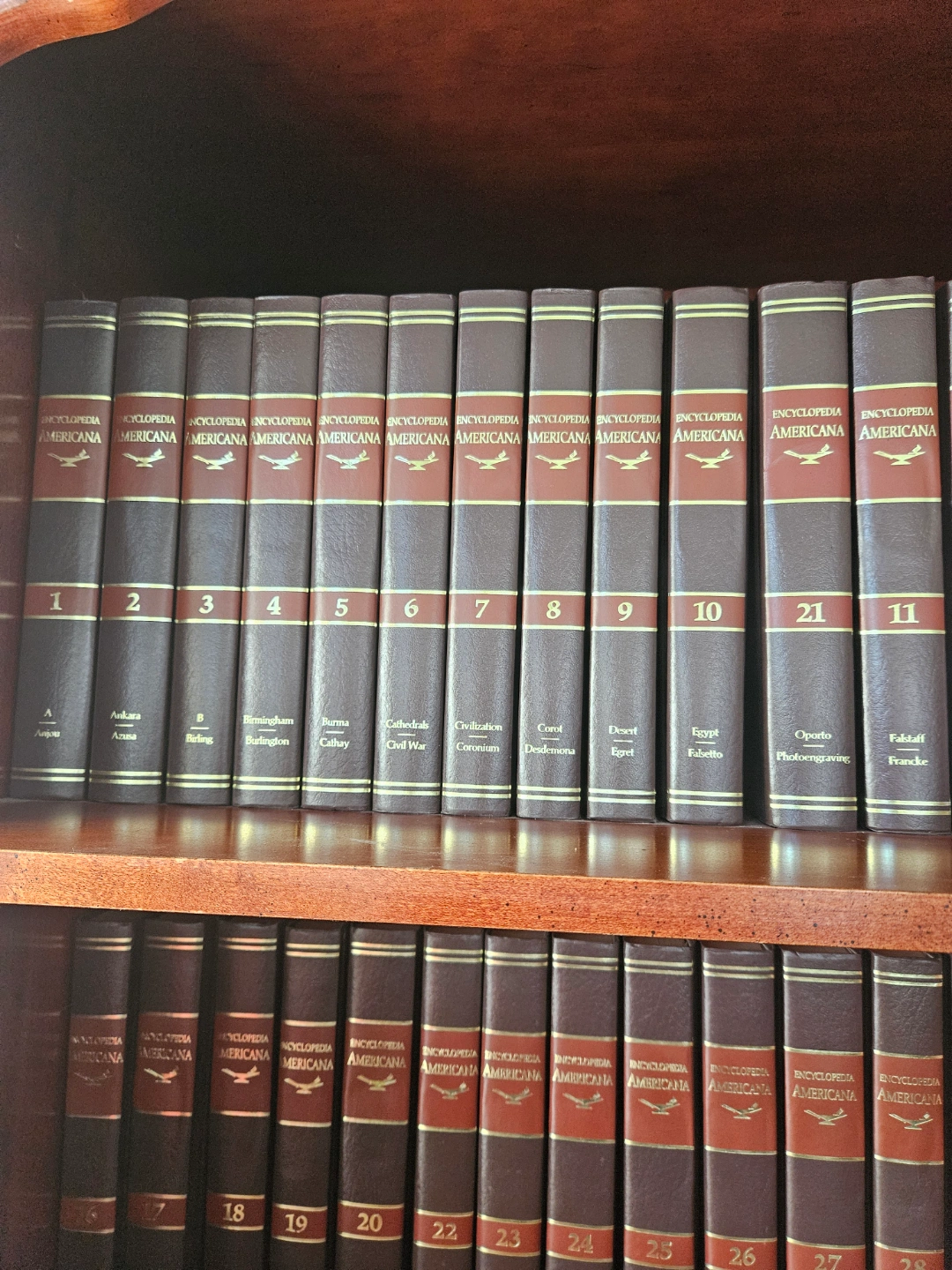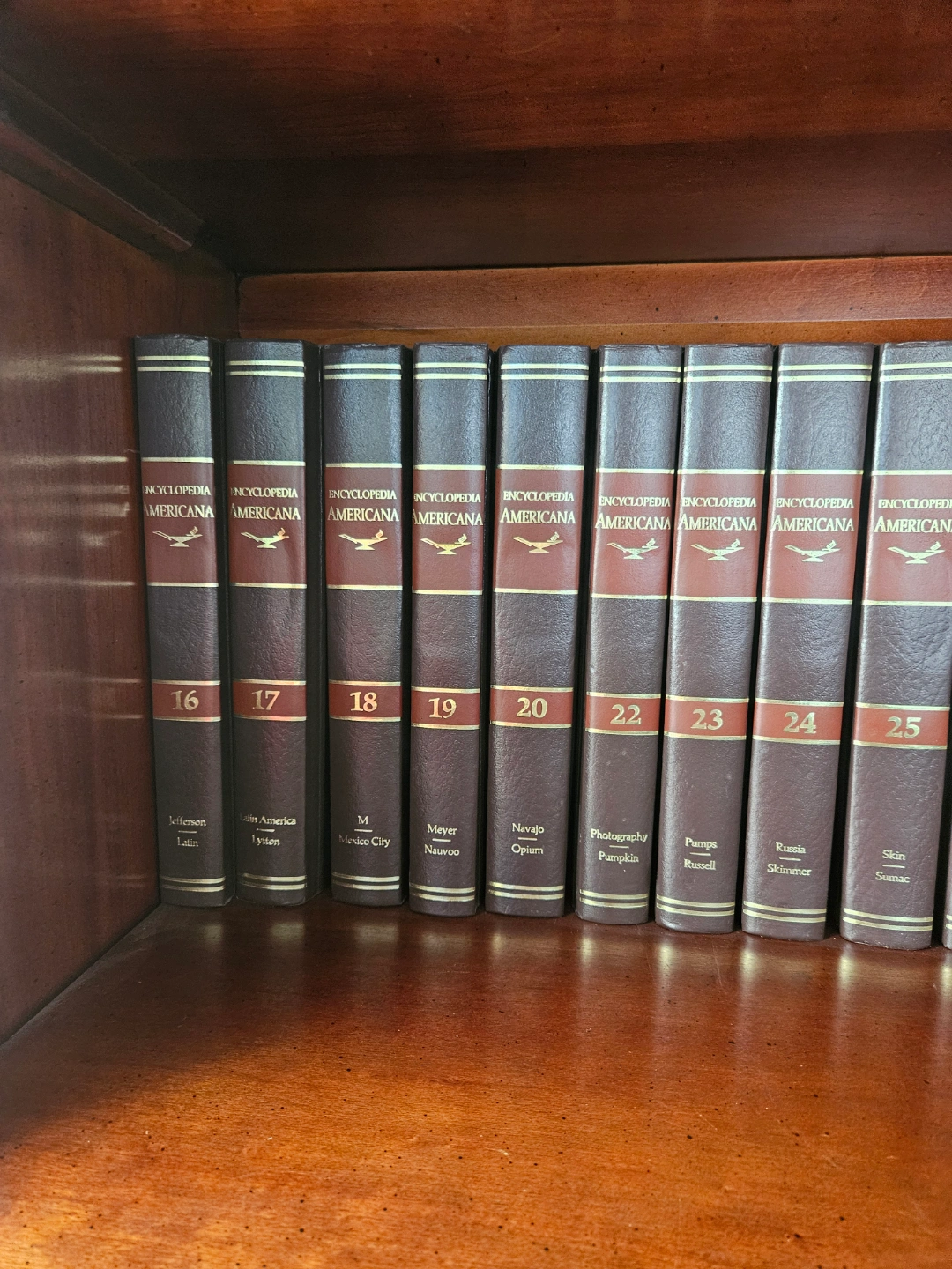 30 Volume Encyclopedia Americana set. Includes a two-volume Lexicon Dictionary. Brand new condition. Rarely used.