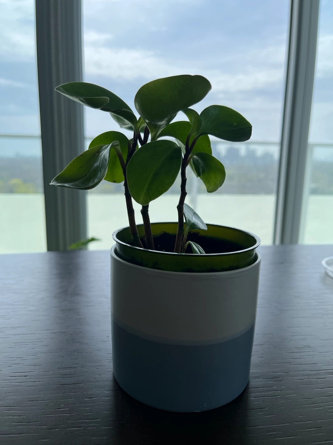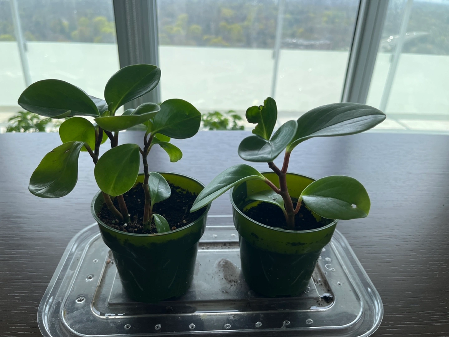 Healthy peperomia obtusifolia young plants, planted in green planter. 6-8 months old. Planted in small pots. Easy to care for.
