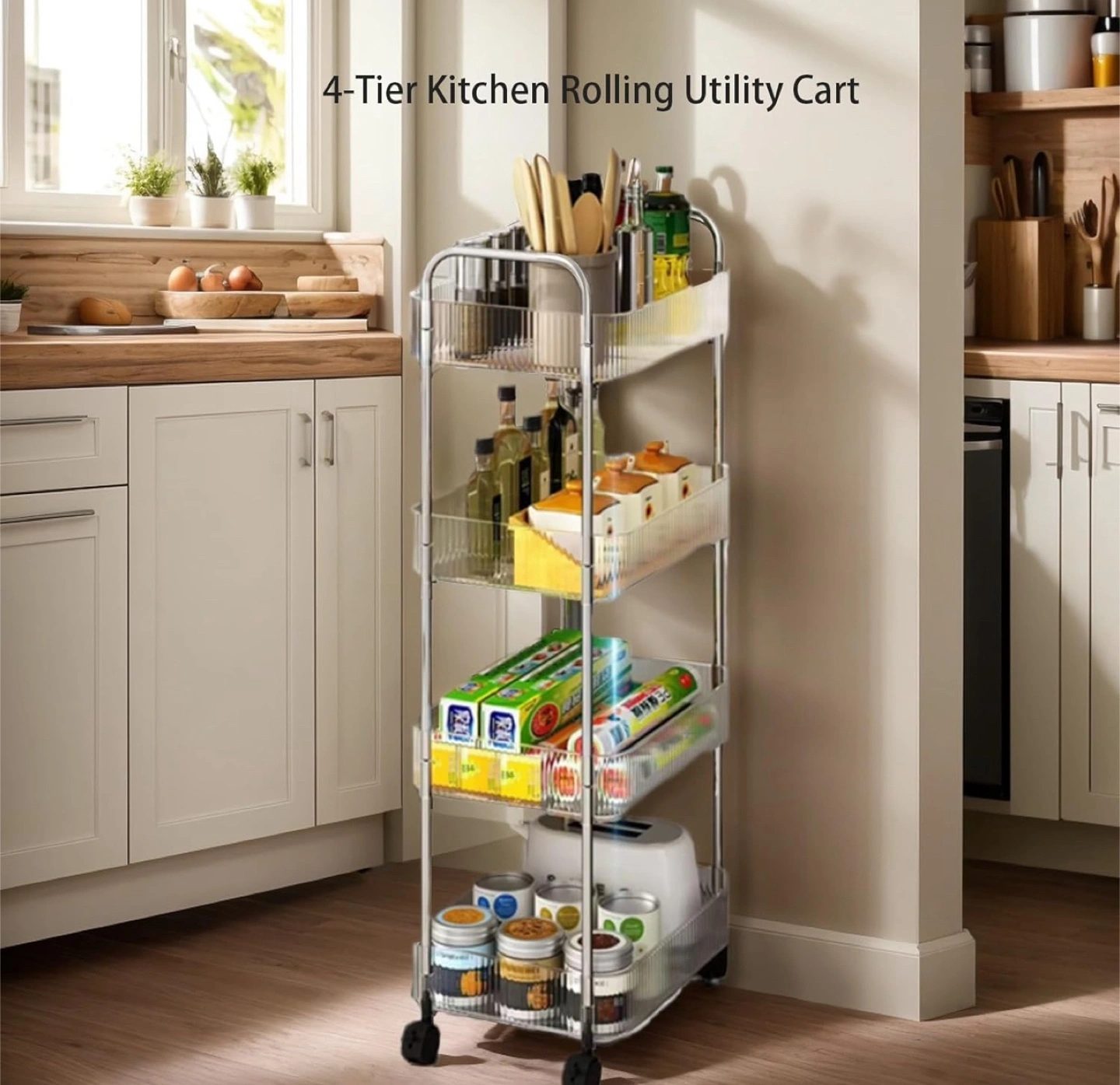 Four-Tier Rolling Utility Cart with 4 Baskets (Brand new)