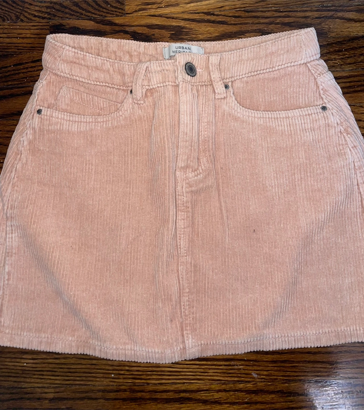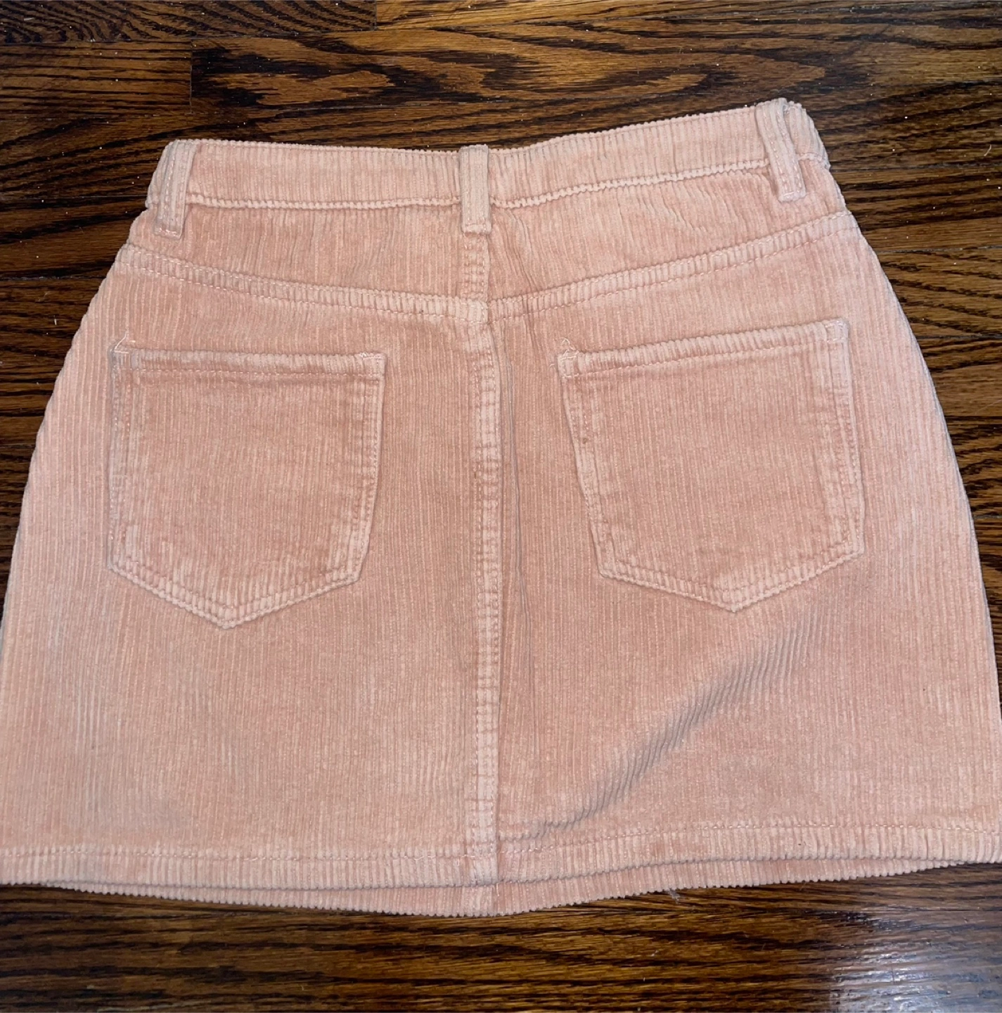24Dusty rose coloured corduroy mini skirt. button and zipper closure. Two front pockets and two back pockets. Great for fall and winter.