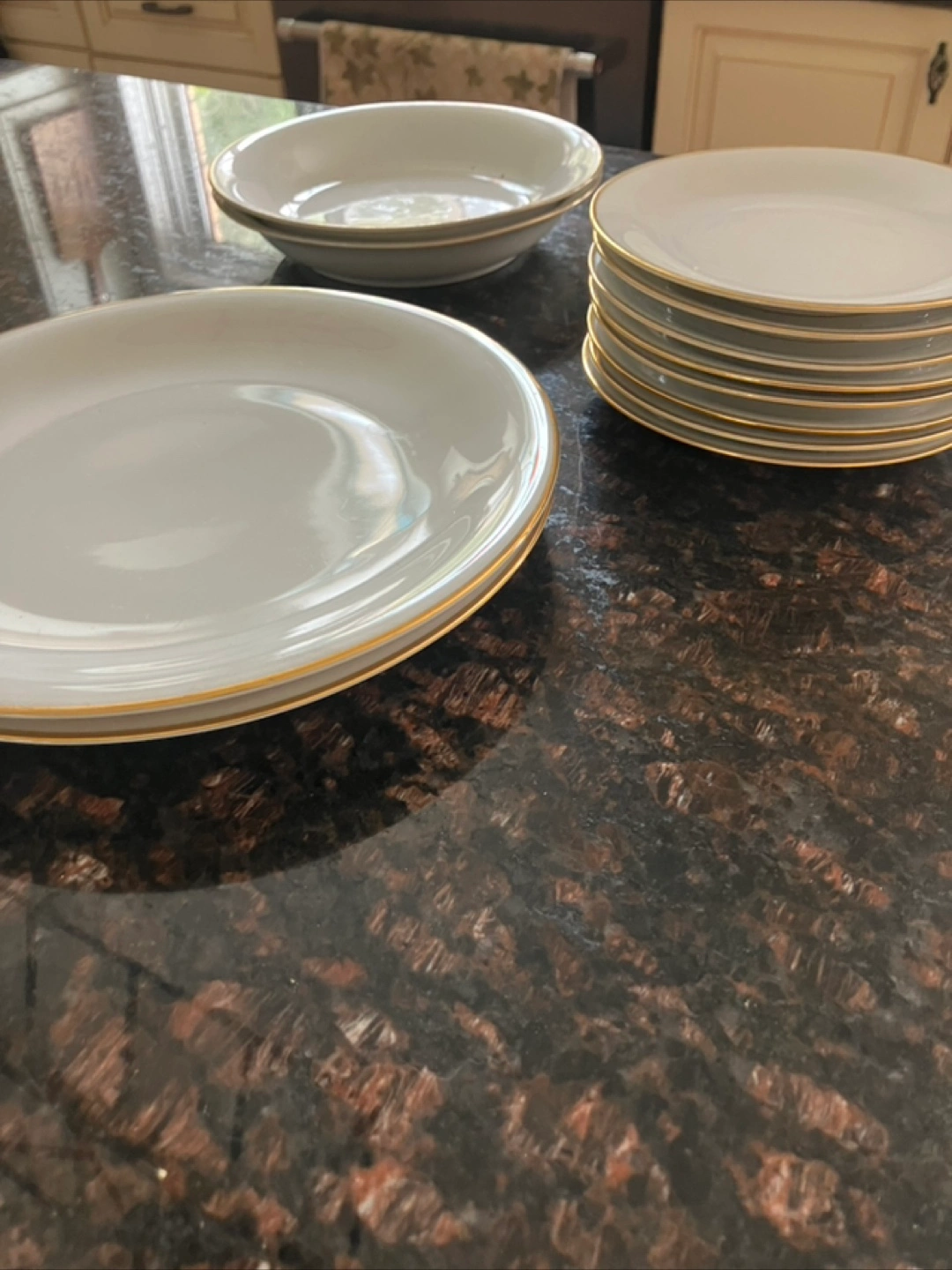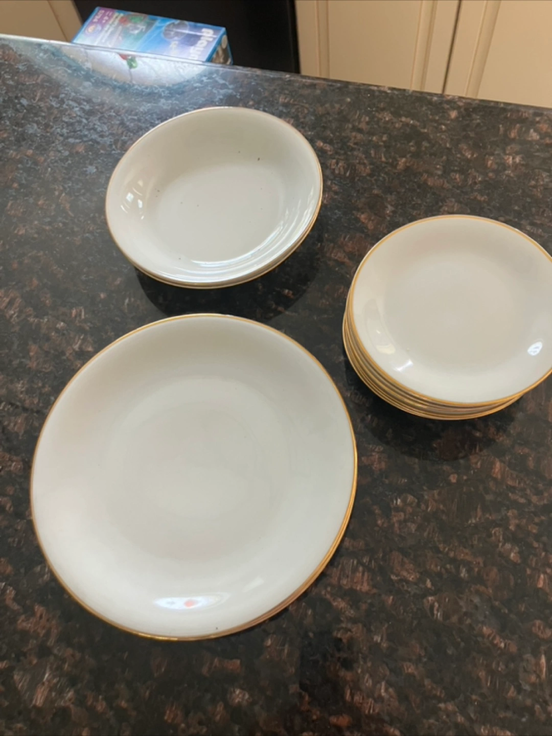 1000+Set of vintage porcelain dinnerware. Includes 2 plates, 2 bowls, and 8 dessert plates. Gold detailing on the rims. Made in Bavaria, Germany. P/up in Thornhill, Yonge St south of Hwy 7. P/up only, no meetings, Cash only**