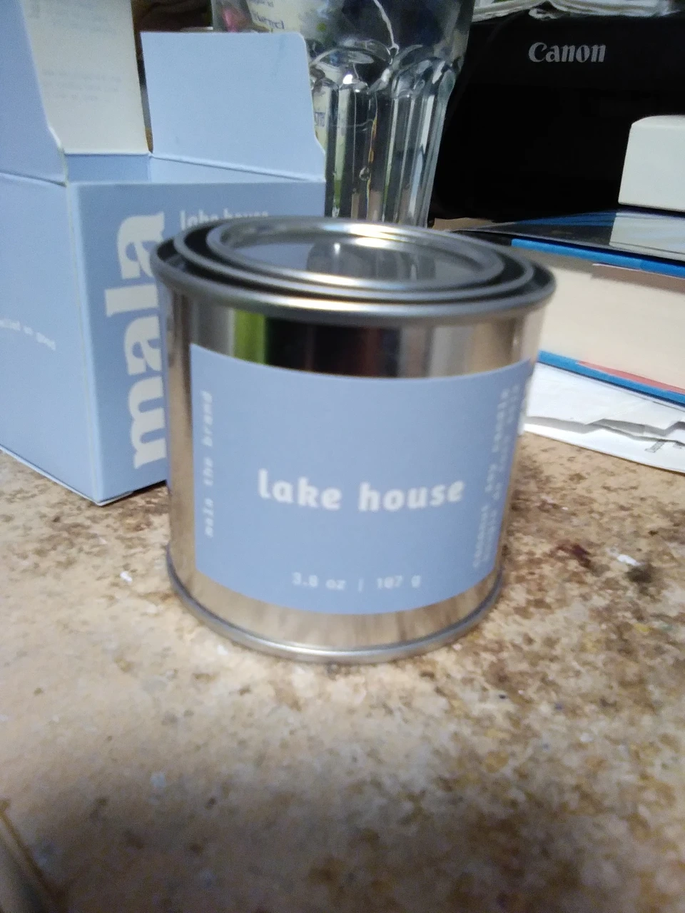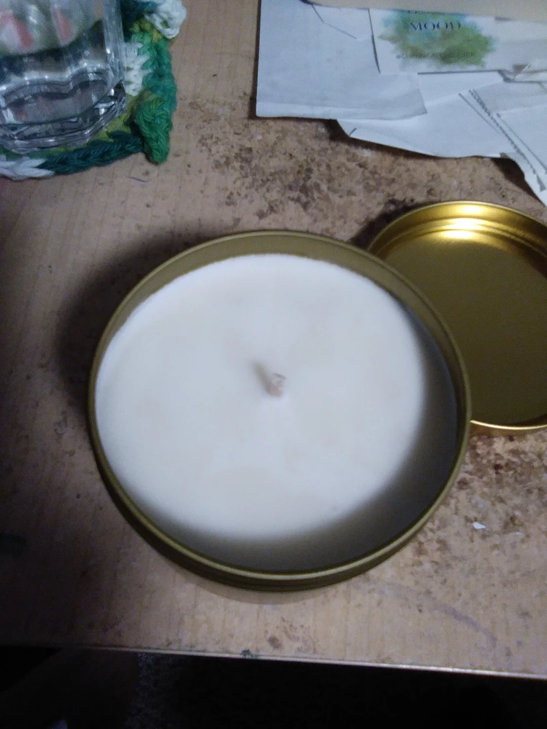vanilla bourbon scented candle in gold tin from indigo. was also a Zodiac thing for Scorpio. bought last year and I put some stickers on the tin but never actually lit it so technically new