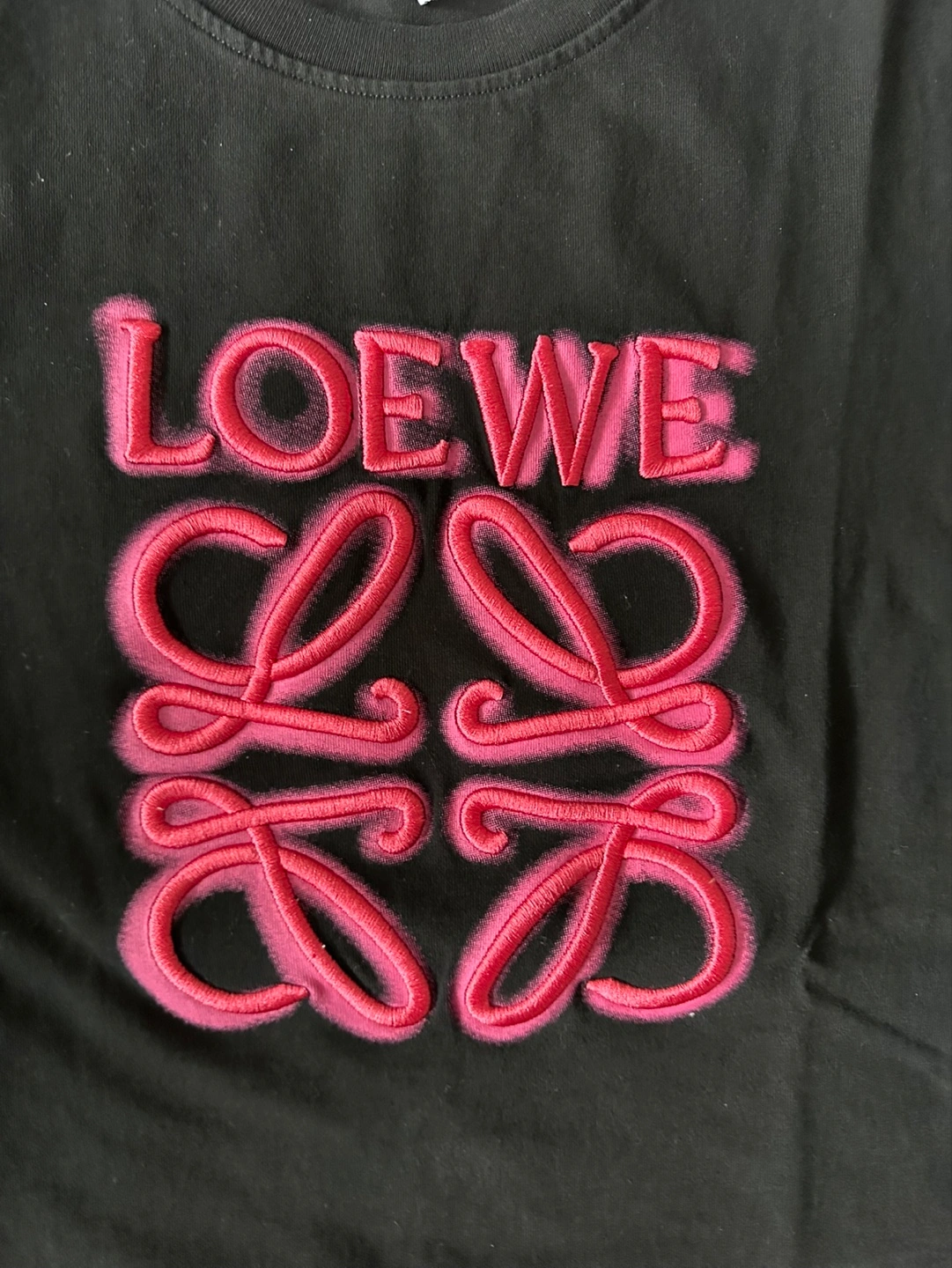 Authentic LOEWE t-shirt. Black cotton. Pink embroidered logo. Made in Portugal. Excellent condition.