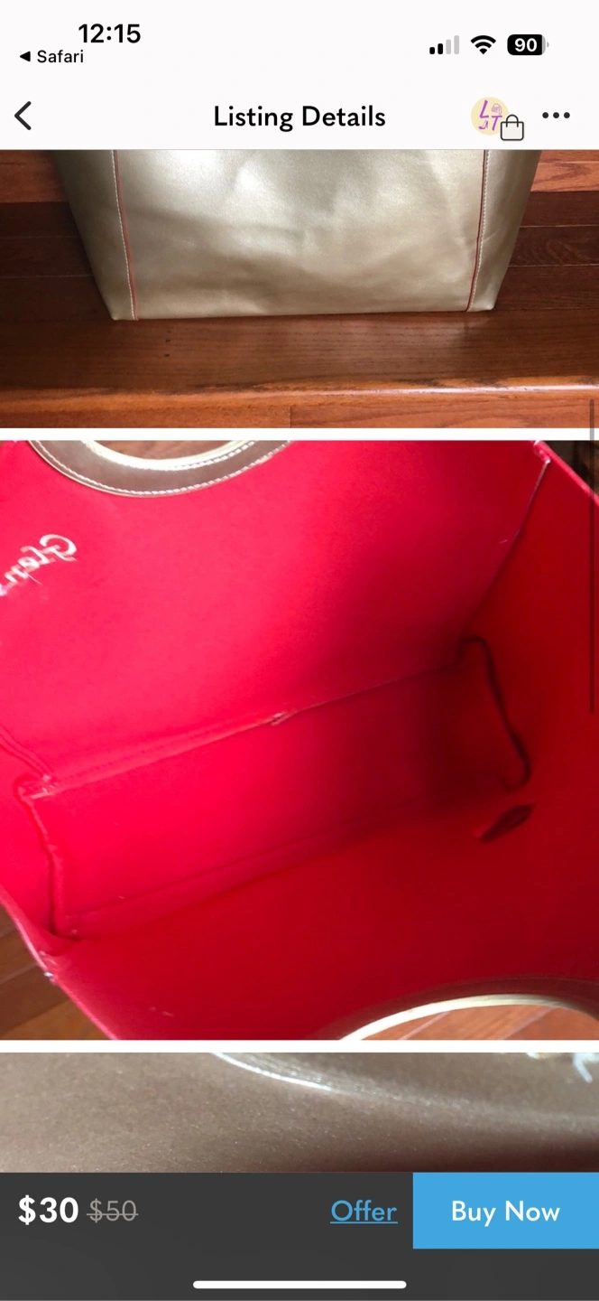 Gold metallic tote bag. Features a large circular top handle and laser cut detailing. New with tags.