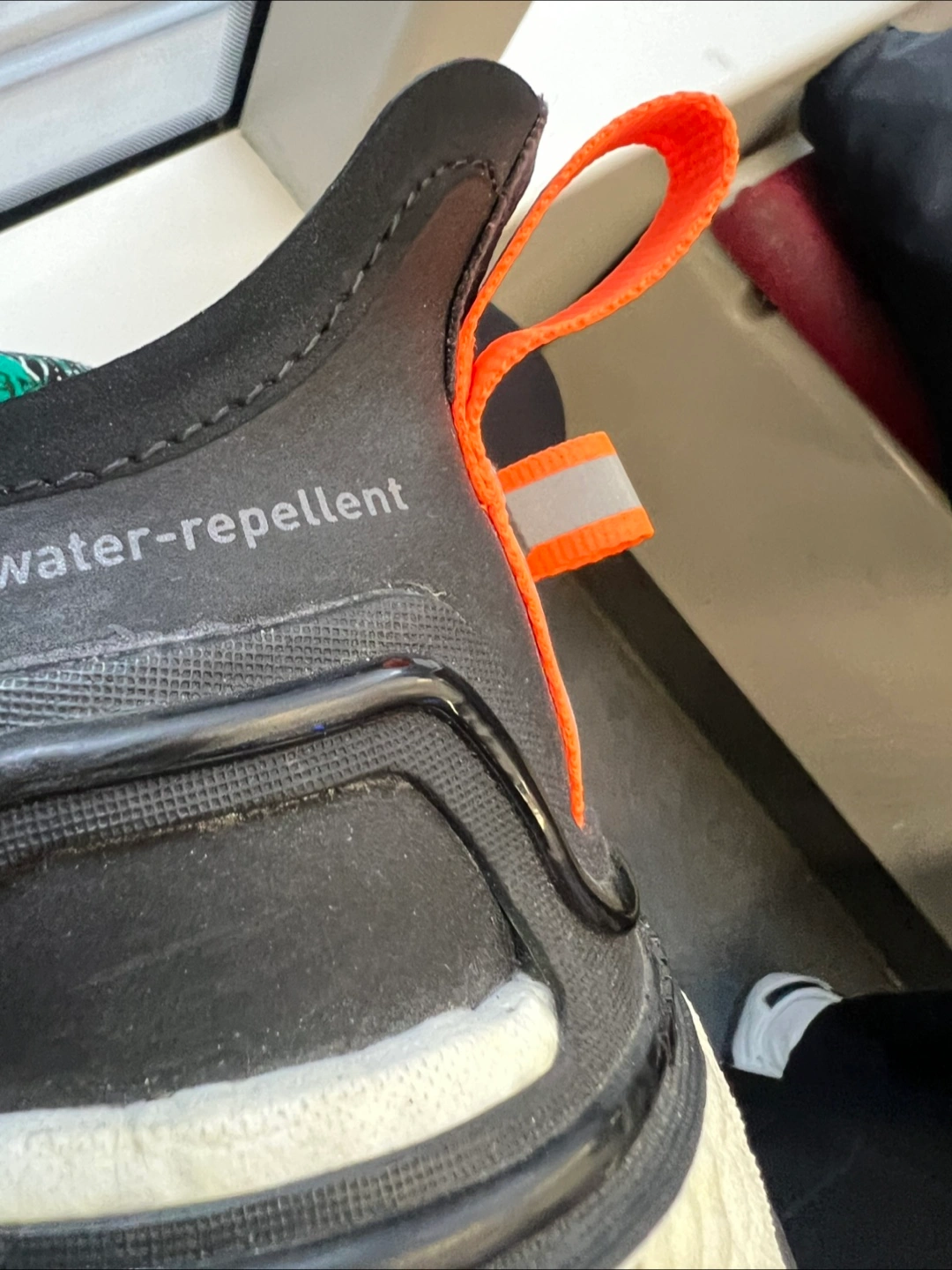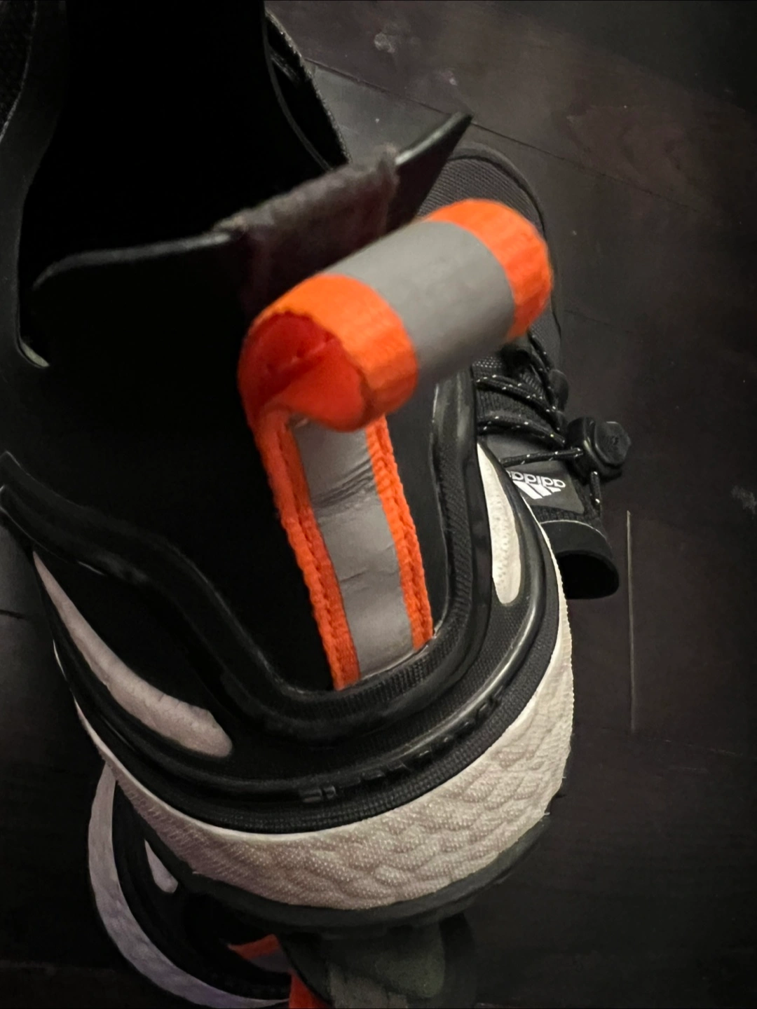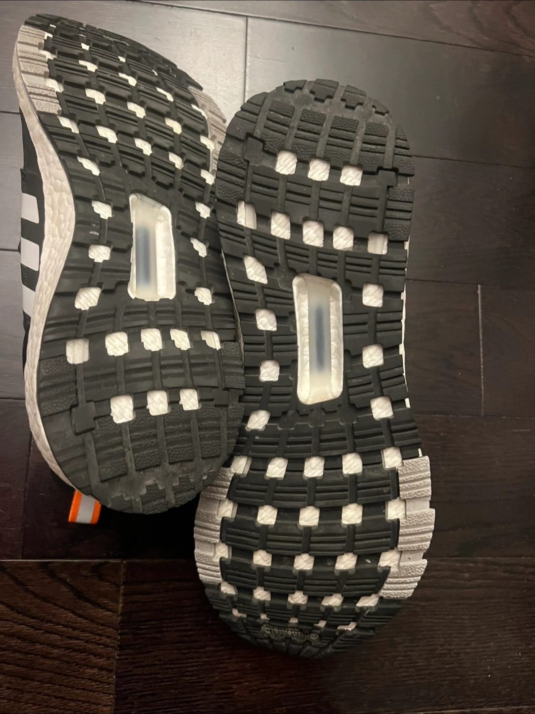 Water-repellent trail running shoes. Black with white accents. Boost midsole for cushioning. GORE-TEX technology for waterproofing. Unique lacing system. Comfortable fit. Only worn once, it’s pretty new without the tags.
