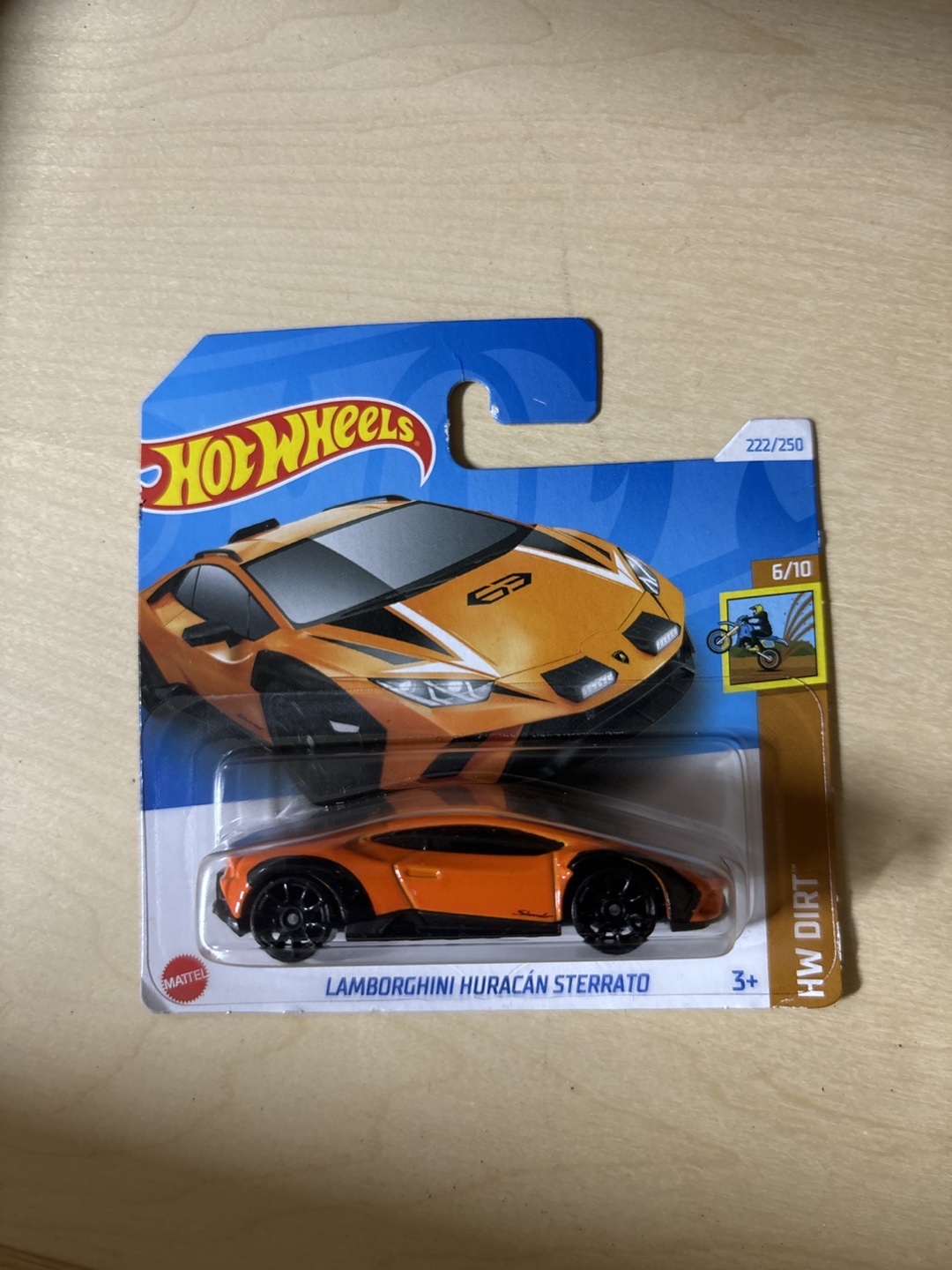 Collectible Hot Wheels car. Orange Lamborghini Huracán Sterrato. Part of the HW Dirt Series. Number 6/10.