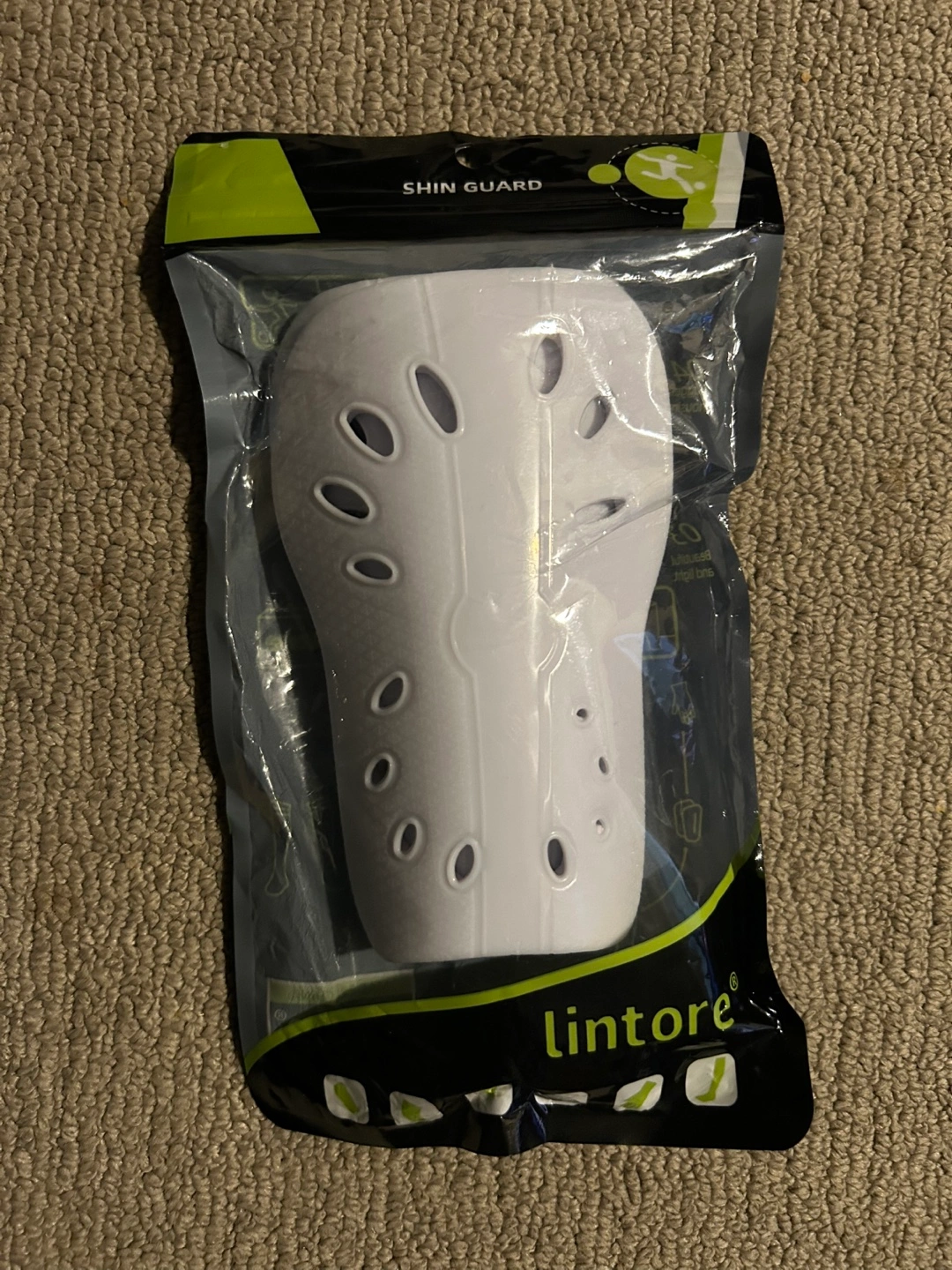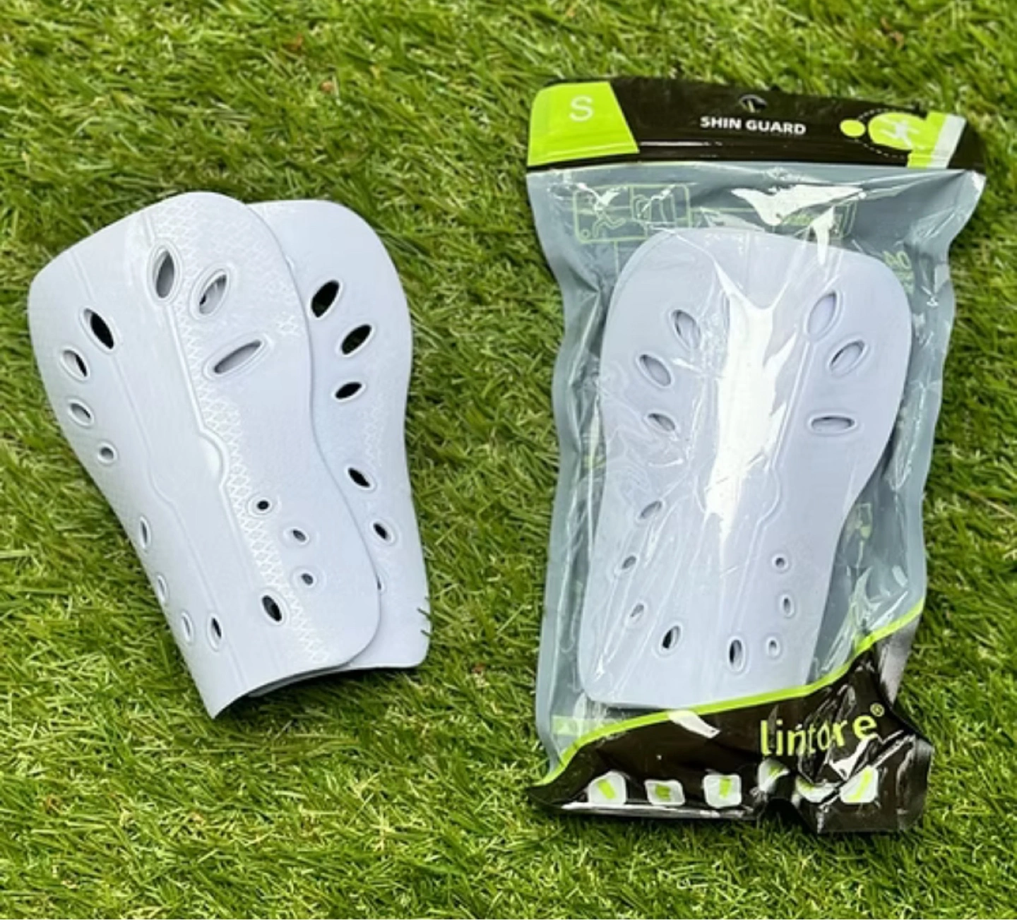 Lintore White Soccer Football Shin Guards in size small. They provide great protection and are perfect for any soccer player looking for reliable gear!