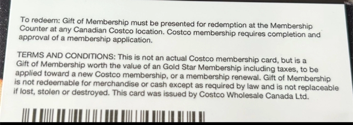 Gift of Membership card. Redeem at any Canadian Costco location for a new Gold Star membership or renewal. Not an actual membership card.