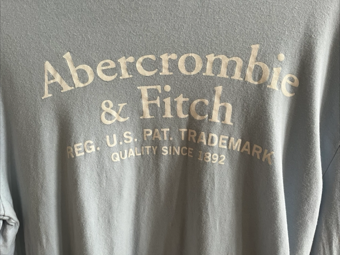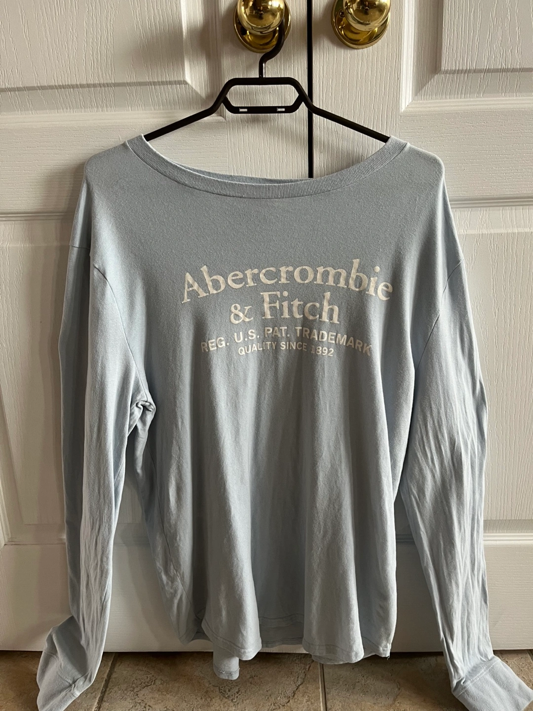 28Brand new never worn Abercrombie and Fitch long sleeve soft logo Tshirt It is a size large and comes from a pet and smoke free home. I purchased this over a year ago and I am a size large but find it a tad tight on my shoulders. This classic shirt is made from cotton, has a crew neck and is unisex. It’s light blue in colour with the logo in white. It’s been folded in a cupboard and needs a good ironing is all and you’re all set to go.