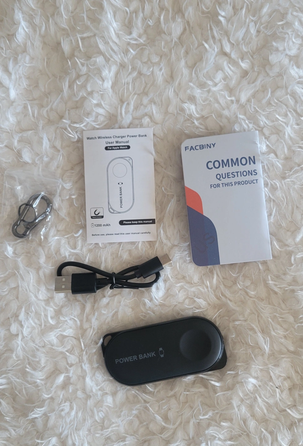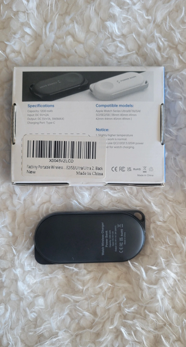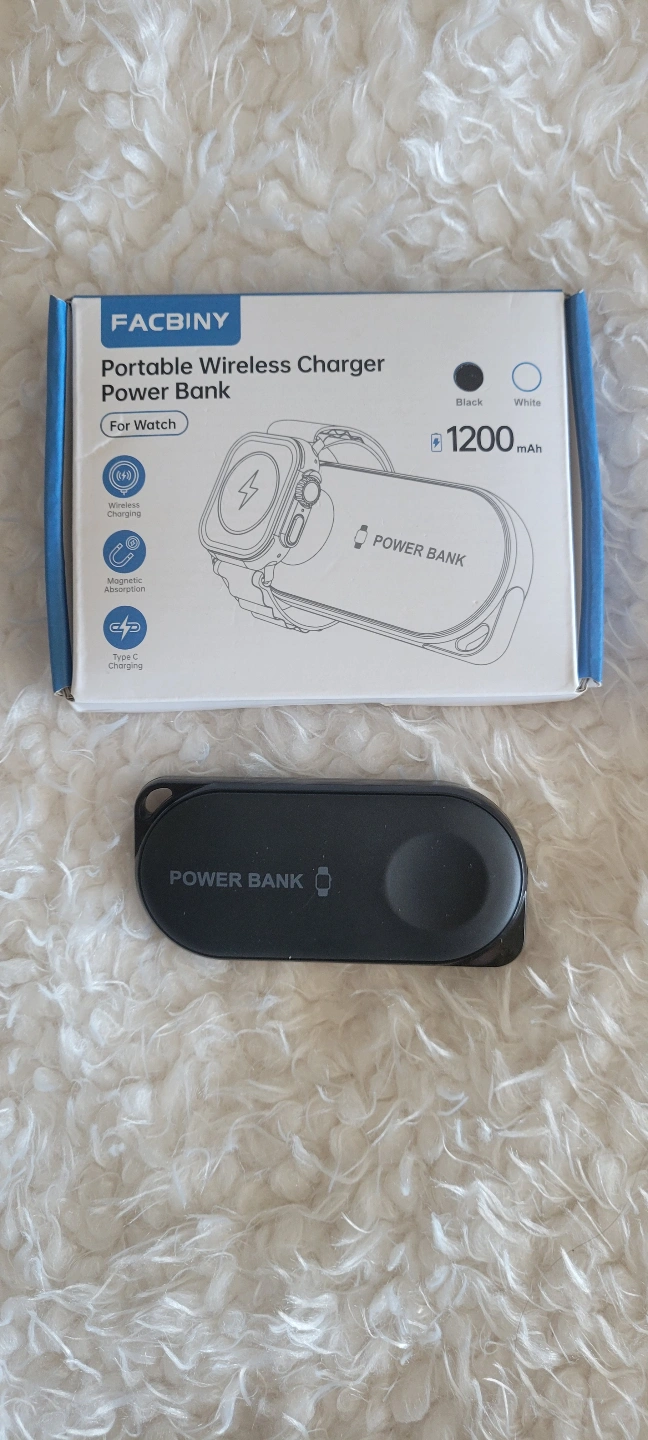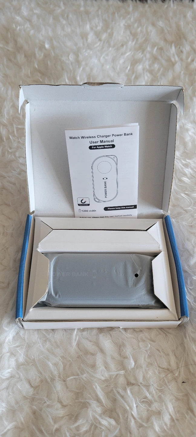 Portable wireless charger power bank. 1200 mAh. For Apple Watch. Please see compatible models listed on box. Magnetic, wireless charging. New, in box.