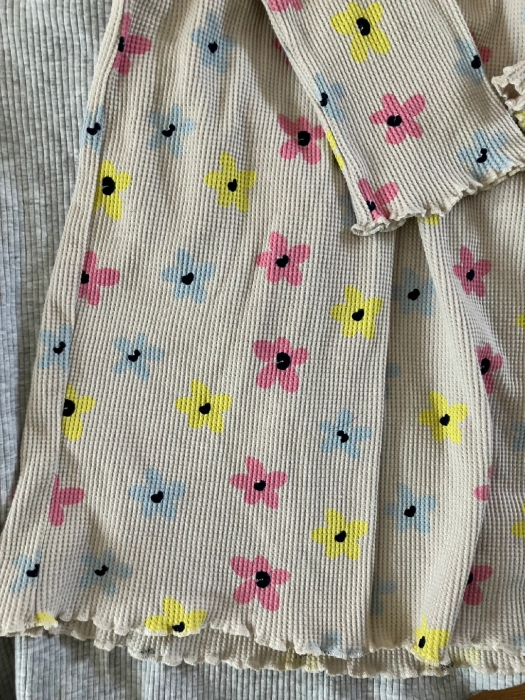 Beige floral dress - size XL. Waffle pattern material with ruffles at the sleeves and dress hem which makes this casual dress cute.
