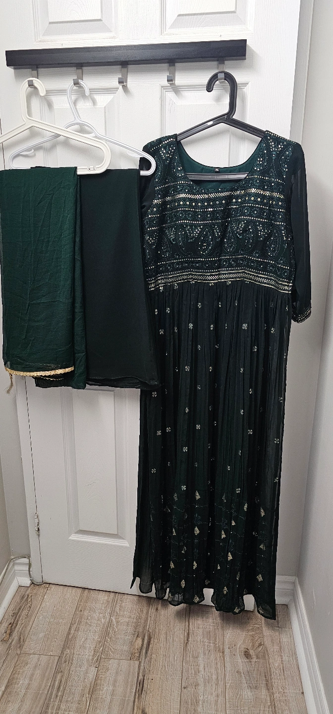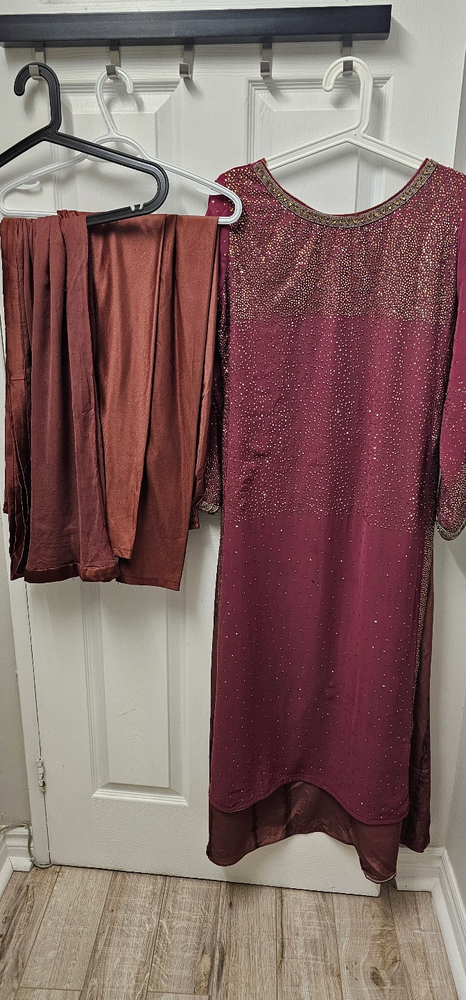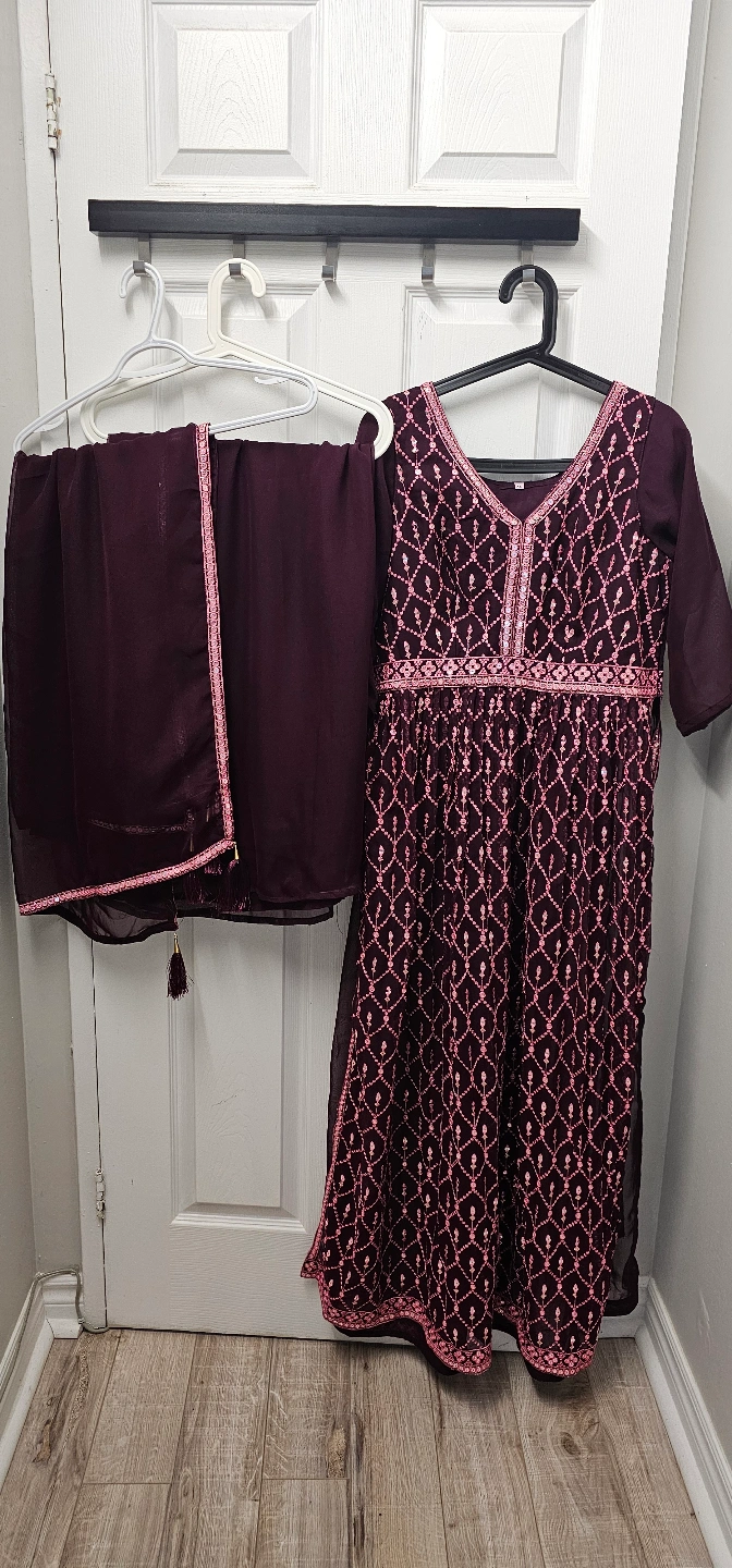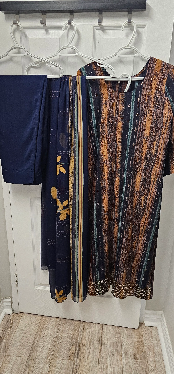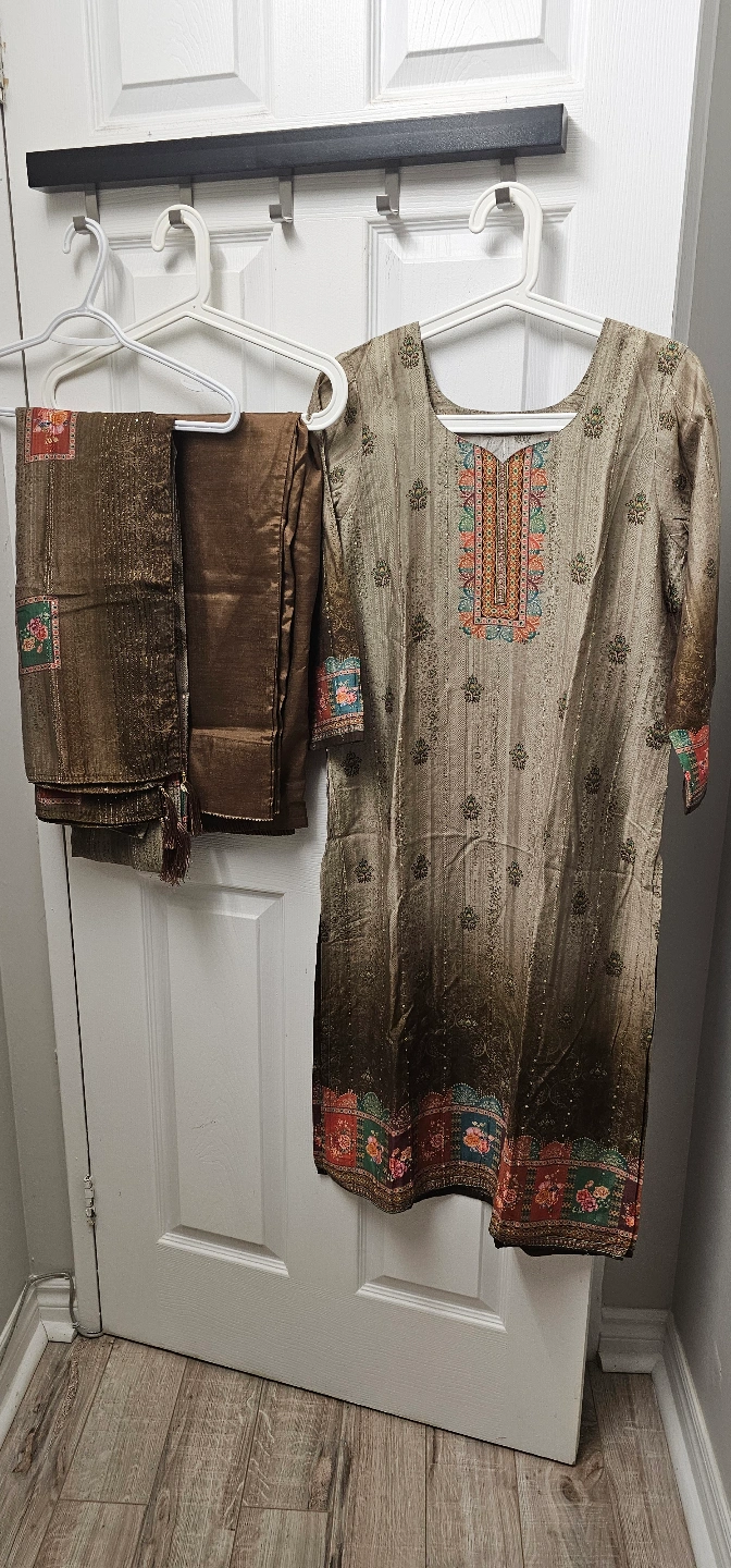 Beautiful embroidered three-piece suits. Includes a kameez, shalwar, and dupatta. Various colours and styles available. Perfect for special occasions or everyday wear. first 3 dress 20$ for each dress