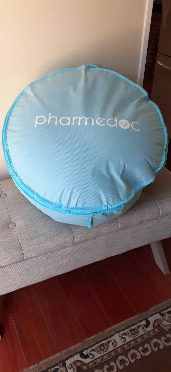 Grey pregnancy pillow. Includes a light blue carrying case. Machine washable cover. Excellent support for pregnant women.