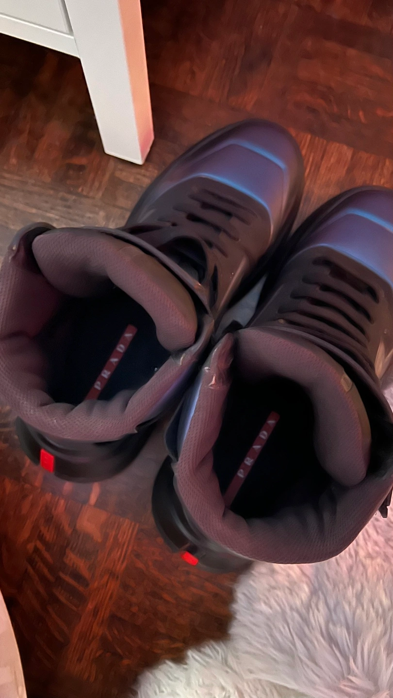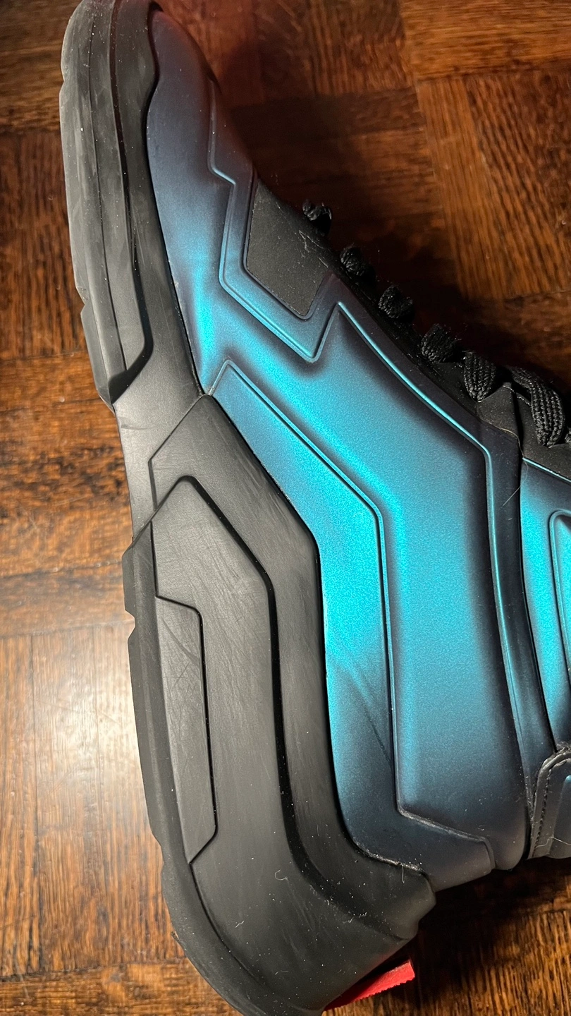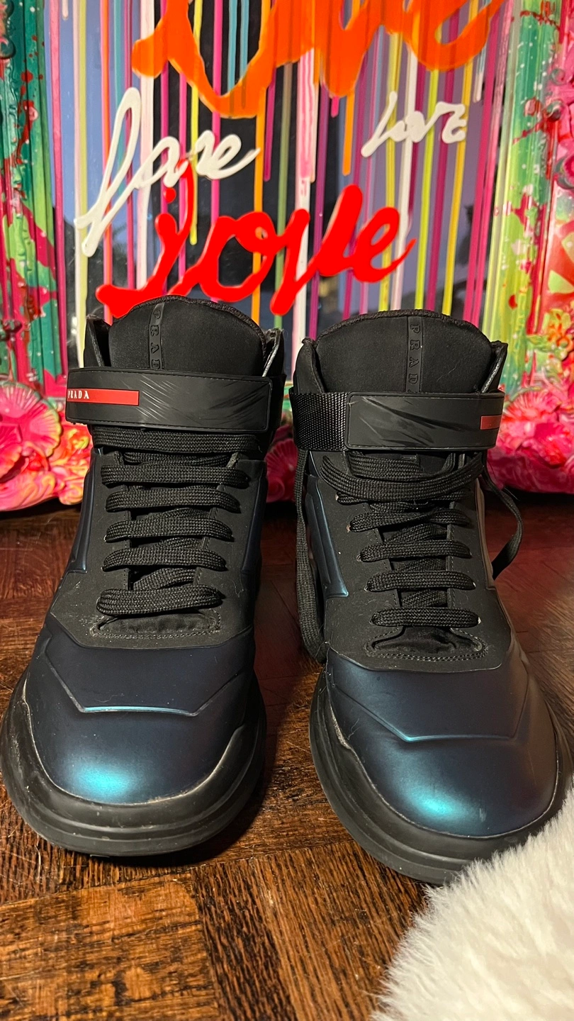 Metallic blue and black high-top sneakers. Features a chunky sole and velcro strap. Lace-up closure. ✨ it’s pre owned I don’t know its original or not so price is low.✨ last price don’t make offer.