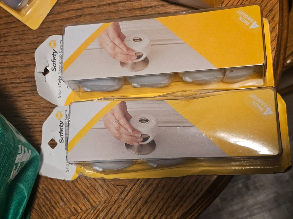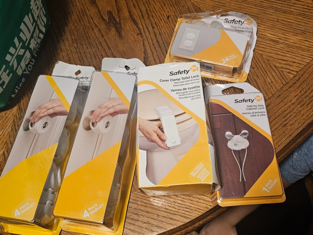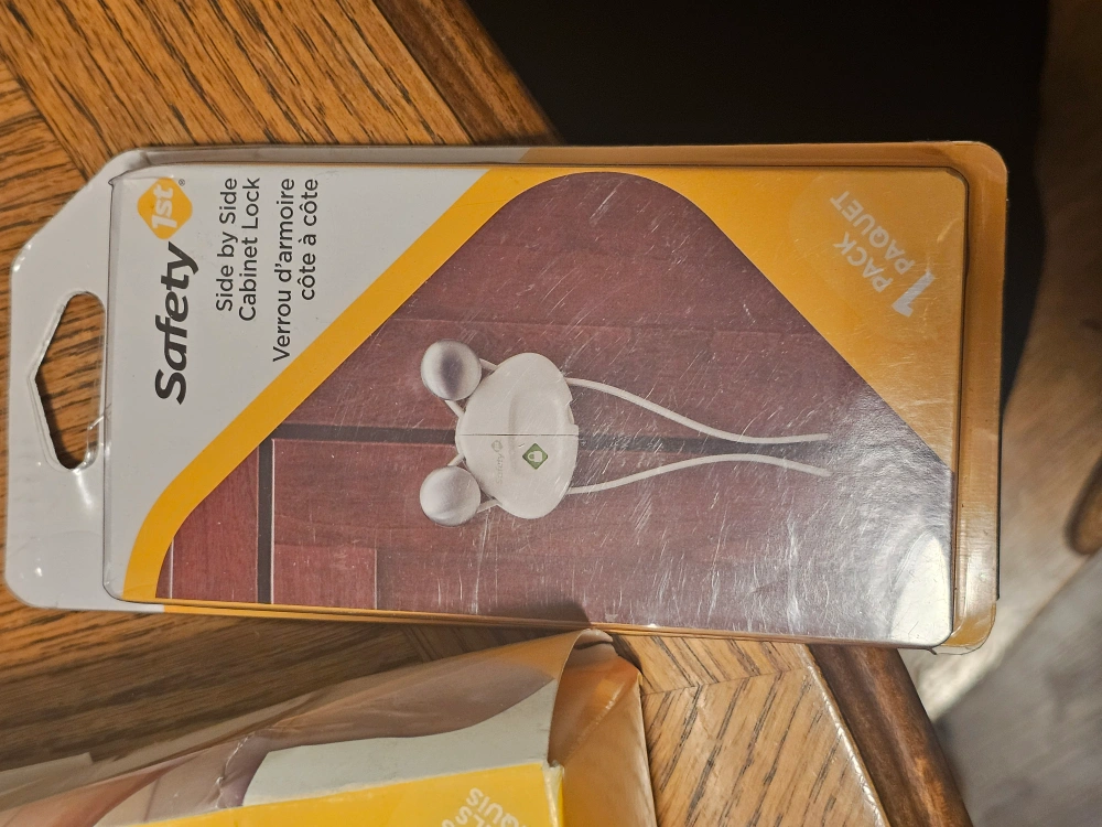 Assortment of Safety 1st childproofing products. Includes toilet locks, door knob covers, cabinet locks, and plug protectors. All new, in original packaging. Perfect for keeping little ones safe. Pick near Adelaide and huron. CASH preferred.