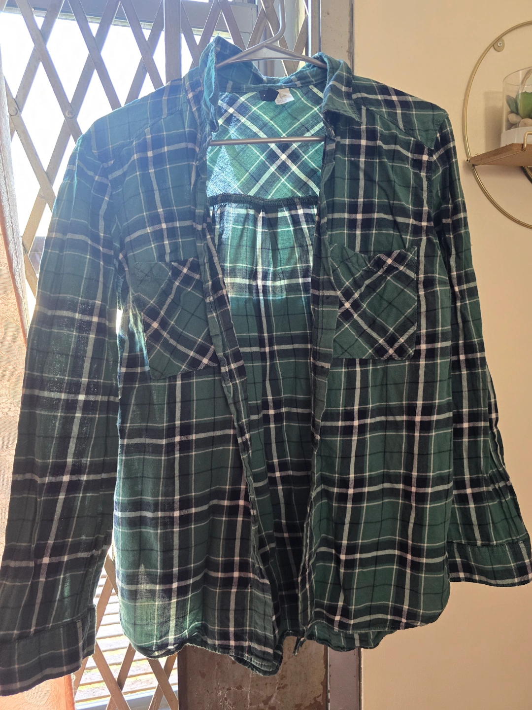 Women's Divided Green Plaid Flannel Shirt