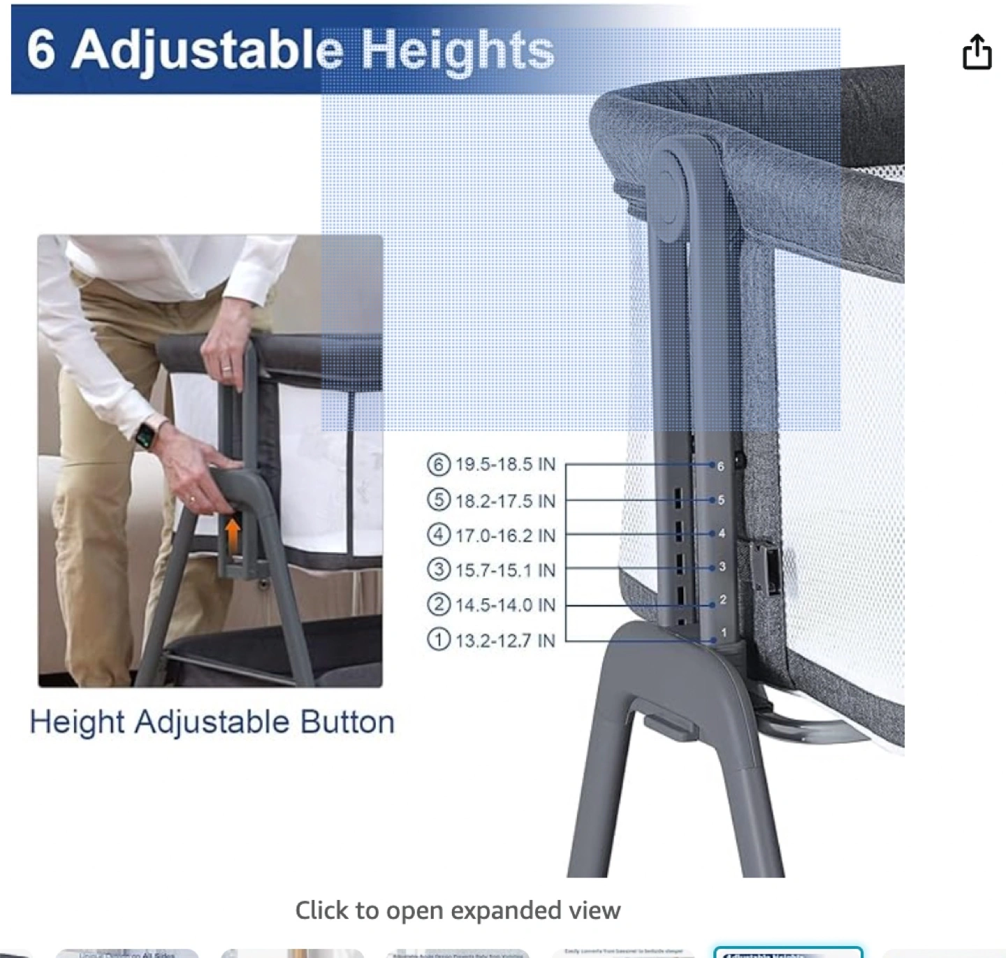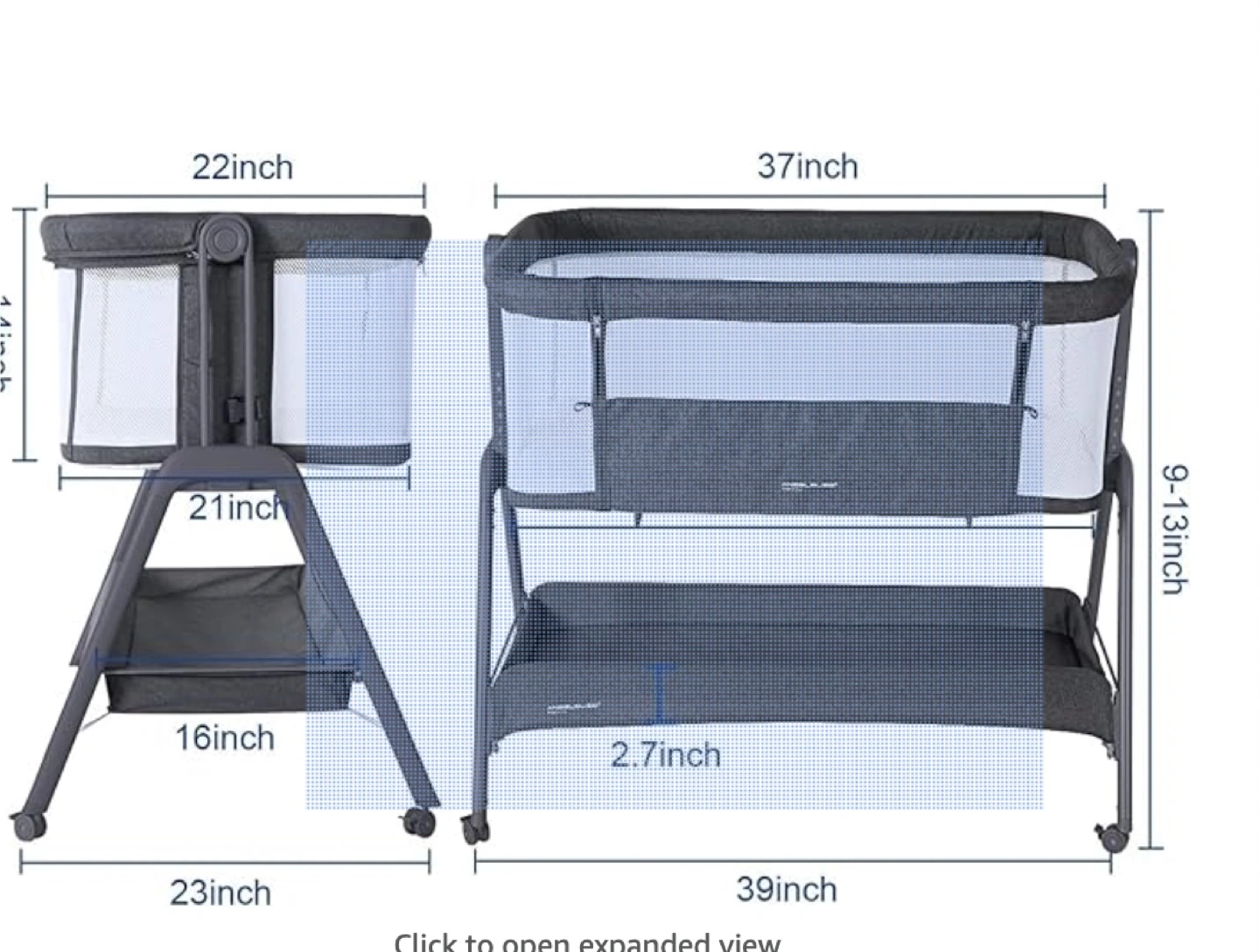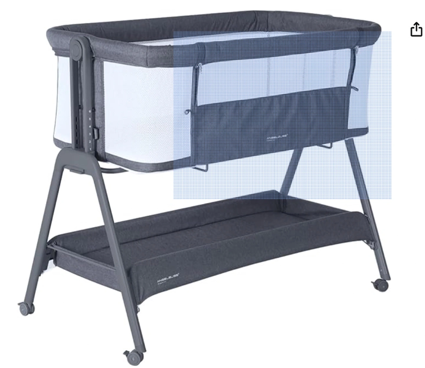 Light grey in colour. Extra large bassinet that can fit baby up to 1 year old or more. Bought new for $299 however our our baby ended up being a" chest sleeper".