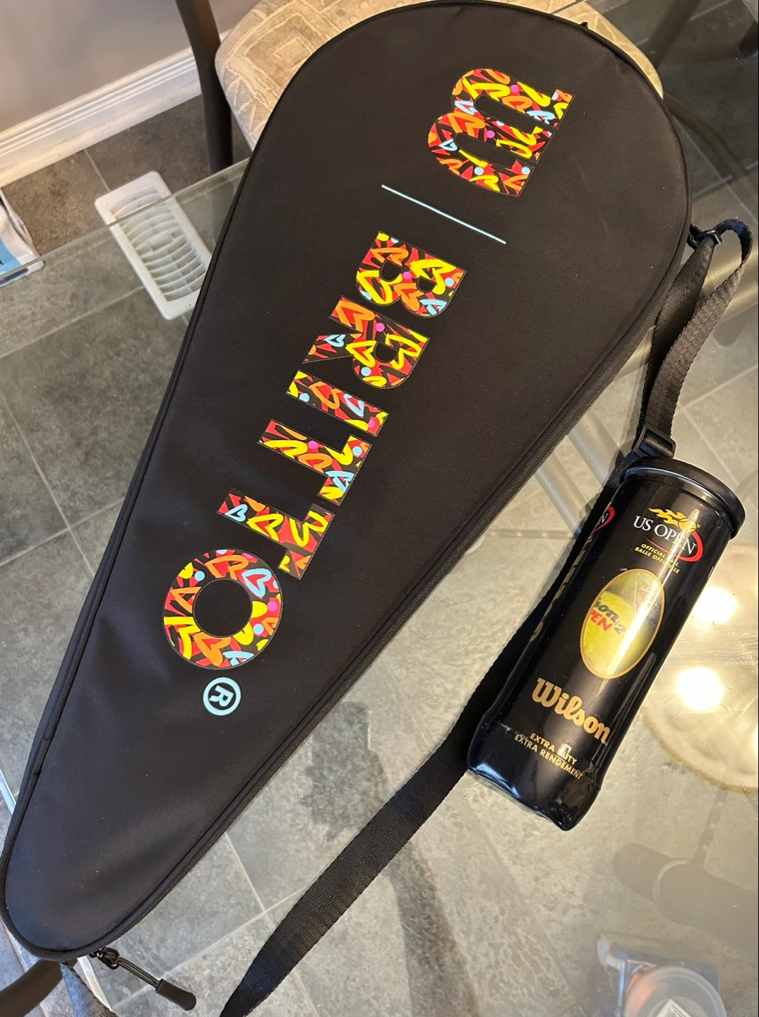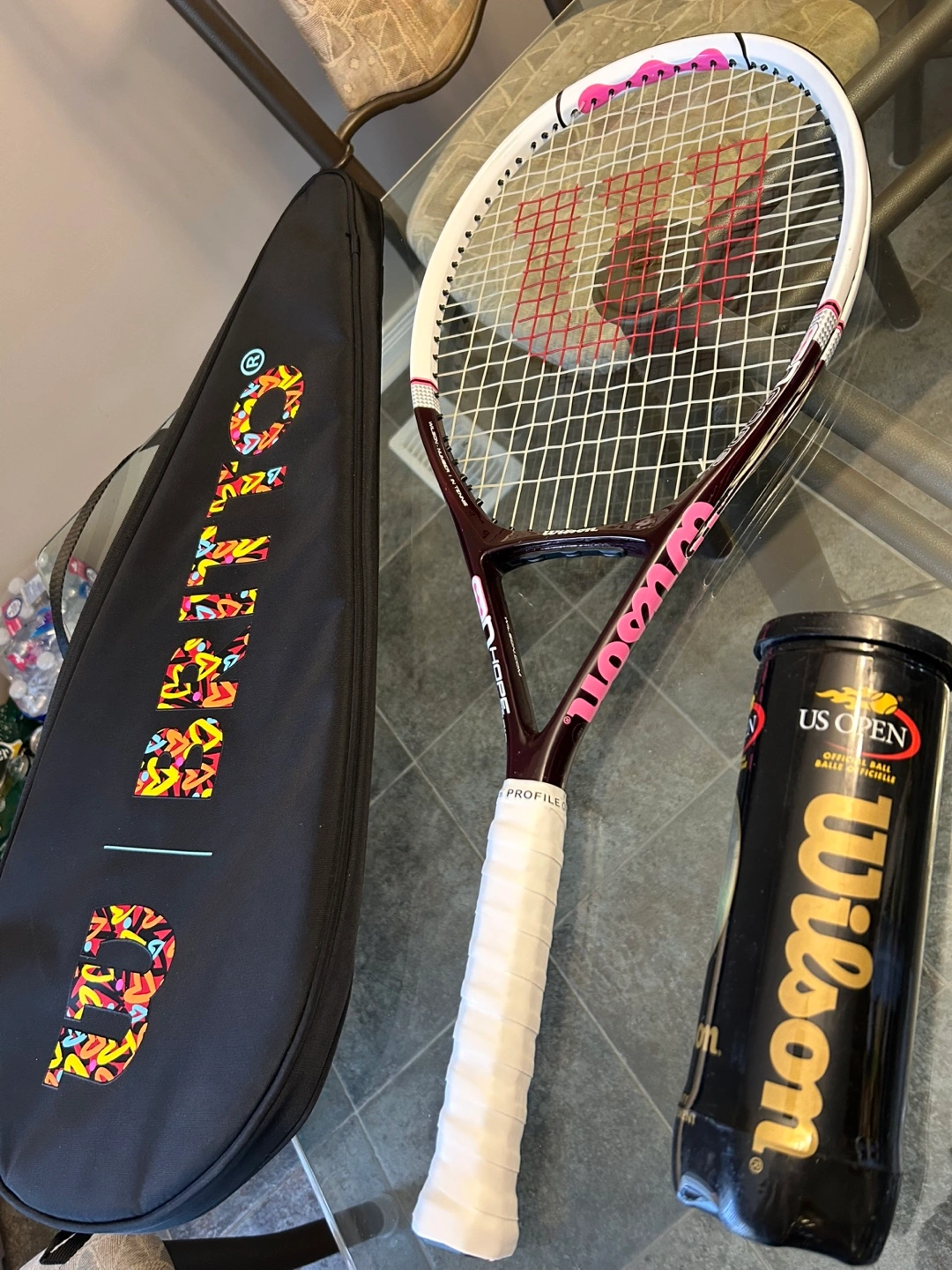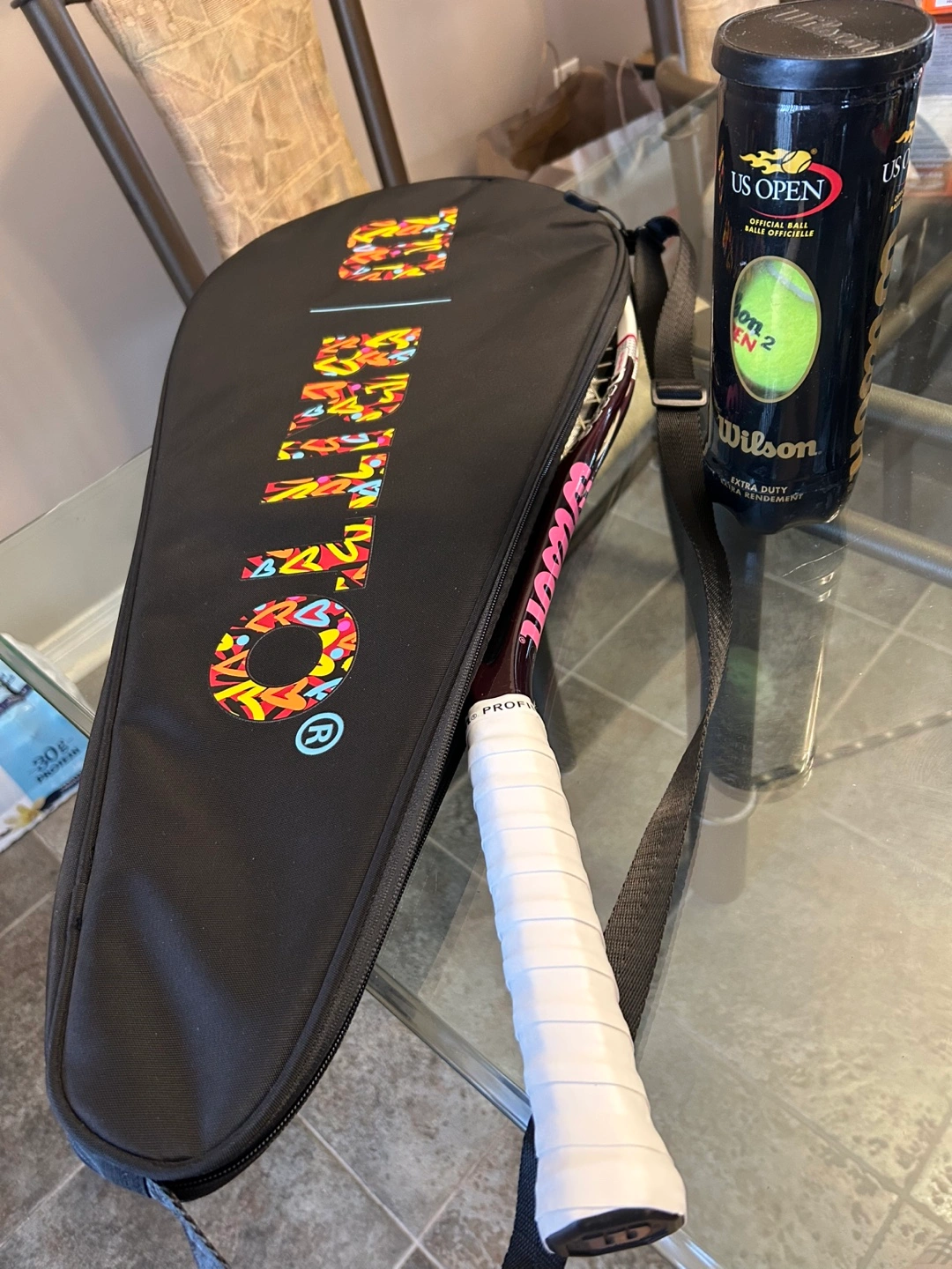 Performance Racquet for Lady, Well balanced between control and speed. $70 for 1 racket/1 Wilson Britto Thermo Carrying Bag/Wilson US Open Tennis Balls(3 new). Text 4165081385 for quicker reply. Specification: Construction: Graphite/Titanium Tension: 23-27kg/50-60lbs Length: 69.5cm/27.5in. Weight: 280g/9.9oz Frame Weight: 260g/9.2oz Headsize: 710sq.cm/110 sq.in Balance: 36cm (Even) Grip: 4 1/4