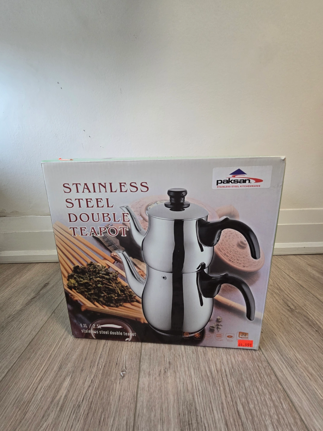 Stainless steel double teapot. 1.1L capacity. New in box. Perfect for daily use or serving tea to your guests.