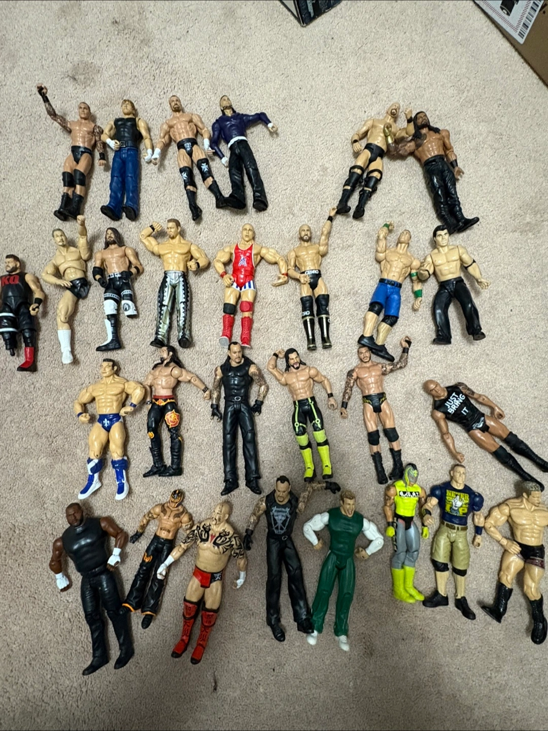 WWE 28 Wrestling Figures Lot and Wrestling Ring