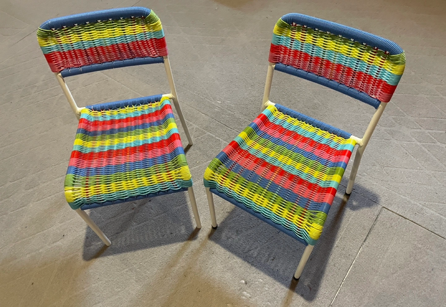 42Two IKEA rainbow color children's chairs. Strong metal frame. Stackable, Lightweight and easy to move. Pick up in Hamilton. Cash or E-transfer.