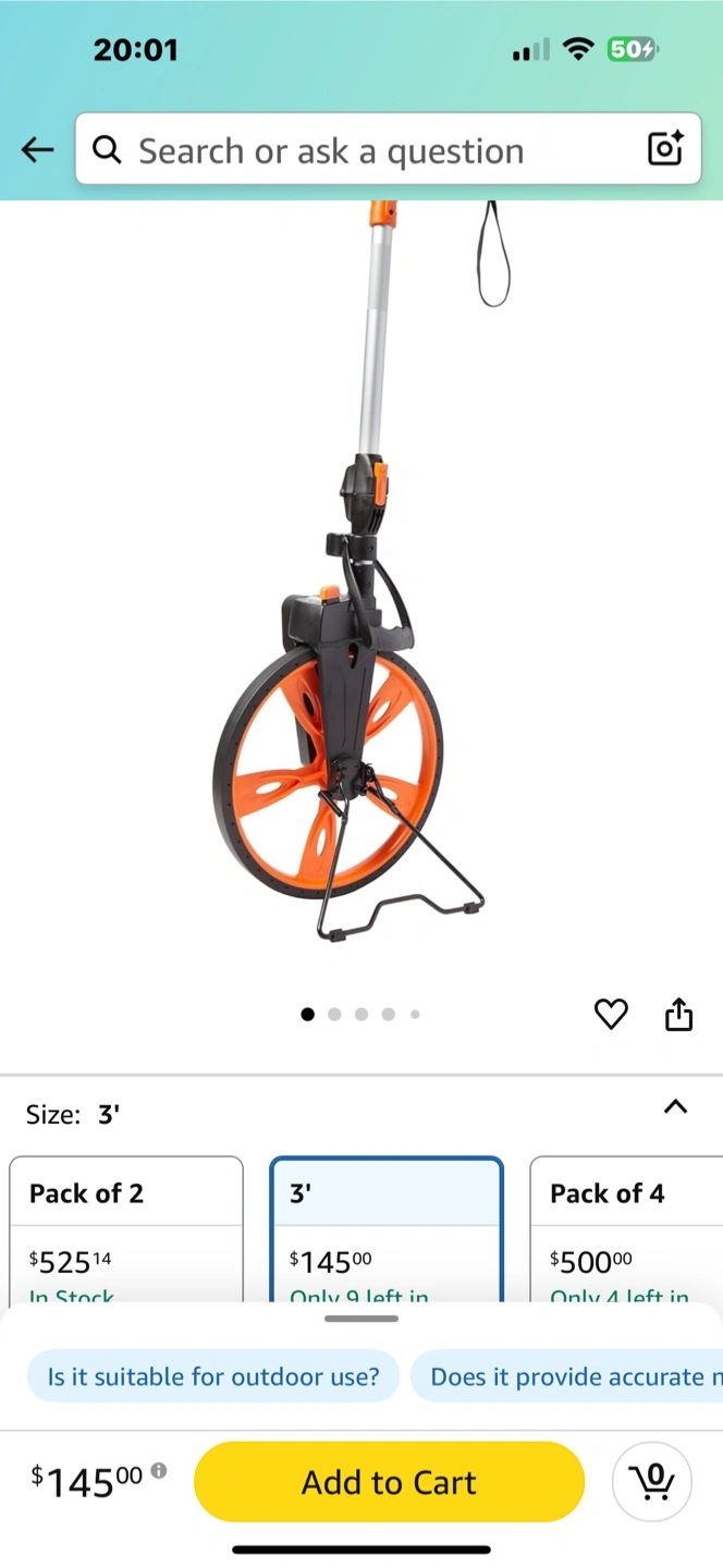 Orange and black measuring wheel. Extendable handle. Good for outdoor use. Accurate measurements. Mint condition suitable for tracking walking distance, engineers,architects, construction etc. Lightweight yet sturdy. Amazon lists this as $145.