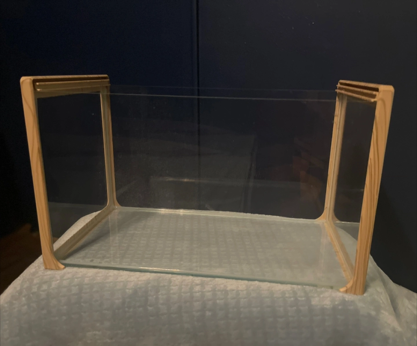 Used for two weeks, as a temporary setup until we moved to something larger. In fabulous condition, no scratches on glass or defects of any kind. Holds water, no leaking. Suitable for a small fish or for a terrarium or aqua scape. Glass with faux wood trim. Dimensions: 15.5 x 8 x 9.5” Pick up from a smoke free home near Browns Line & Lakeshore Boulevard in Etobicoke (Toronto/Mississauga).