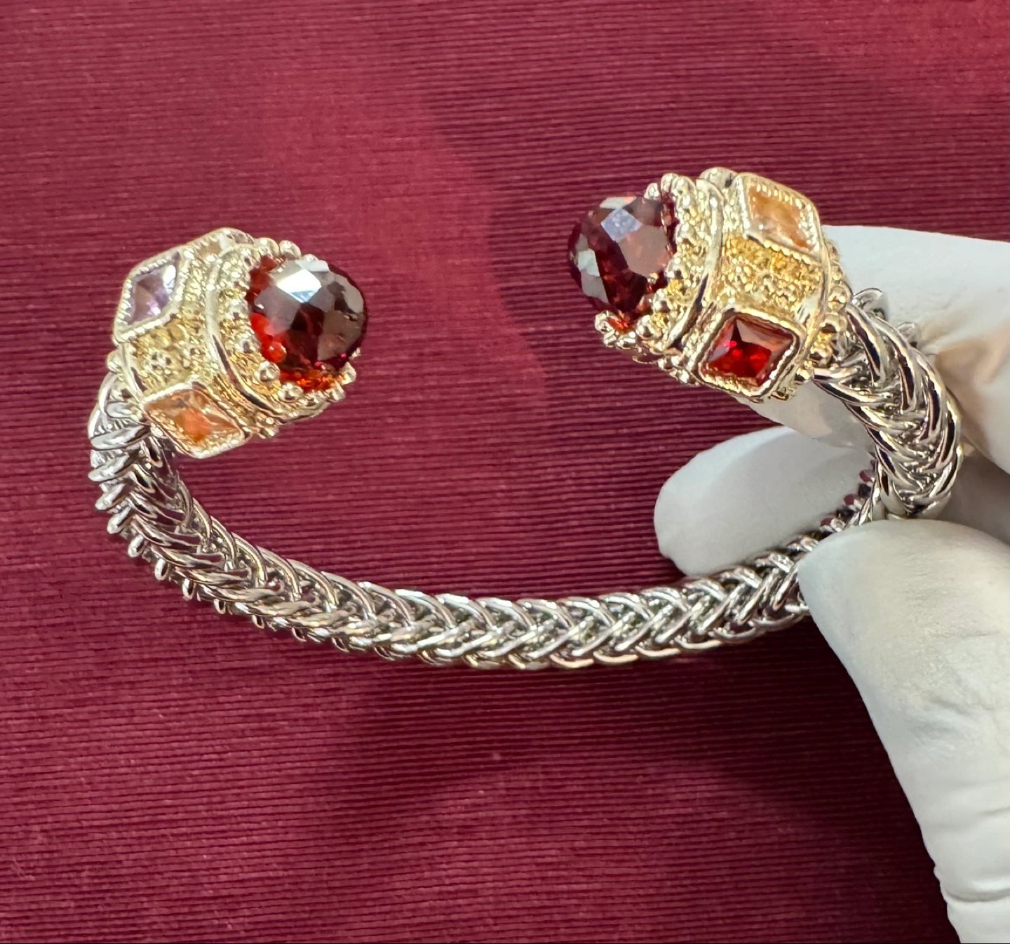 14K plated Renaissance Bangle Bracelet Garnet Gemstones