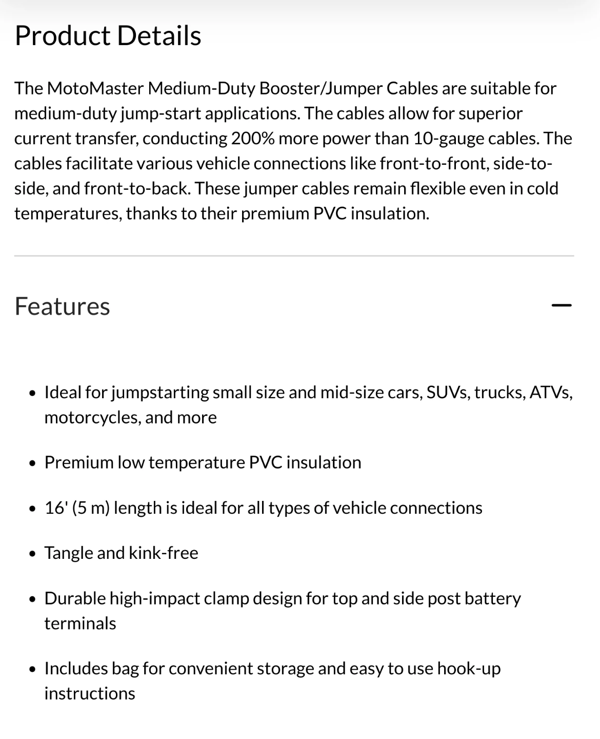 MotoMaster Medium-Duty Booster Jumper Cables, 4-Gauge, 16-ft