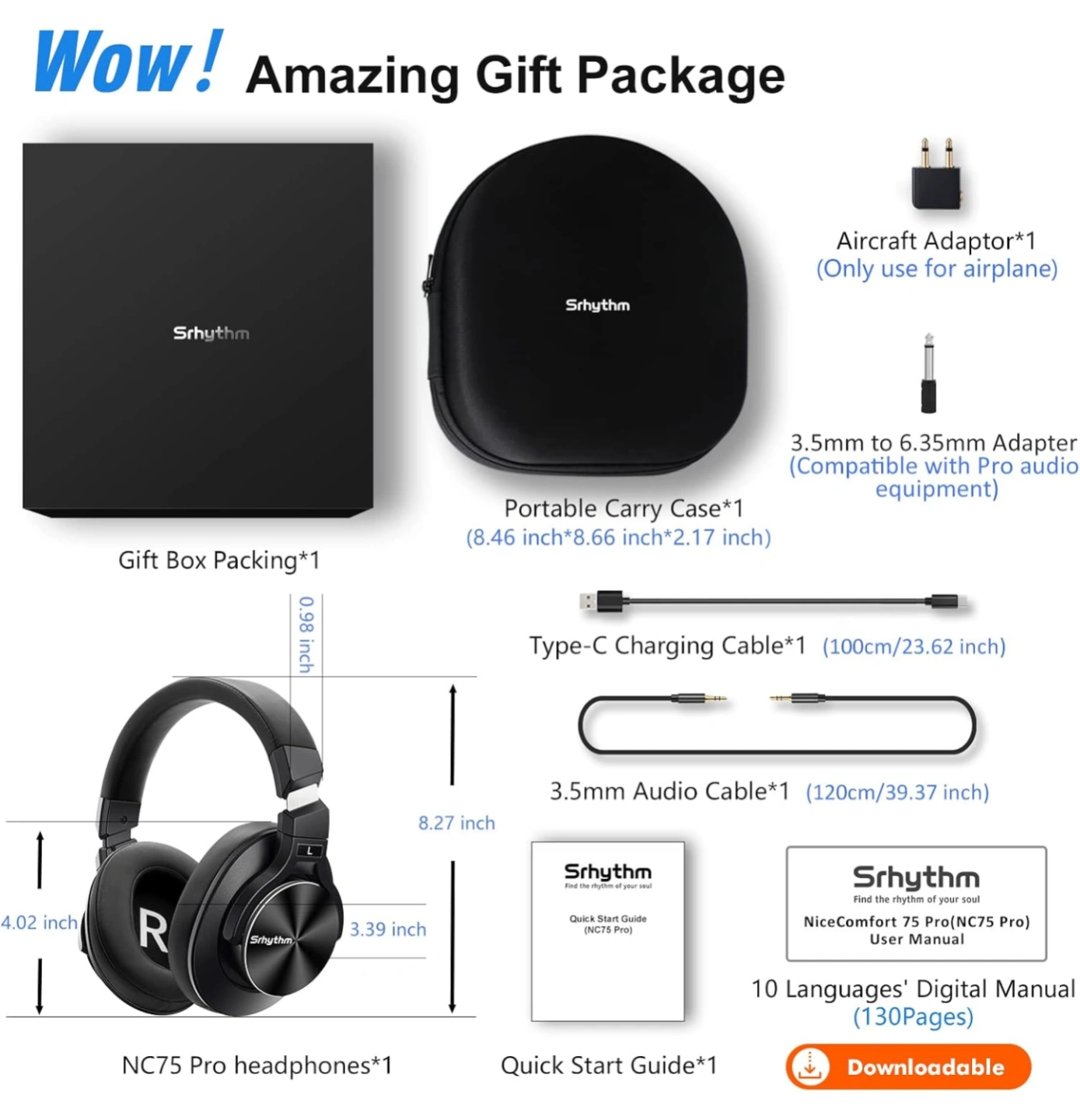 - Srhythm NC75 Pro Noise Cancelling Headphones