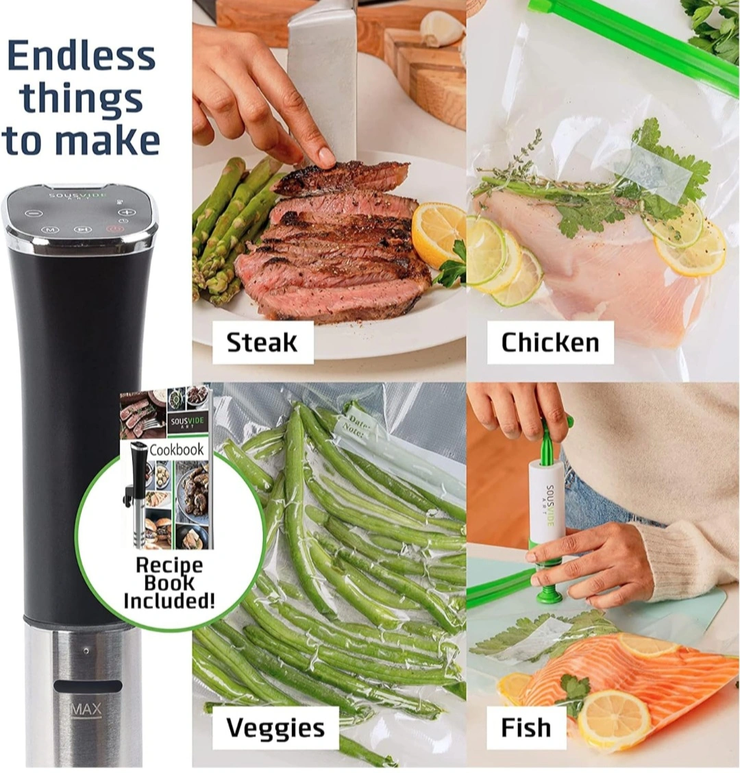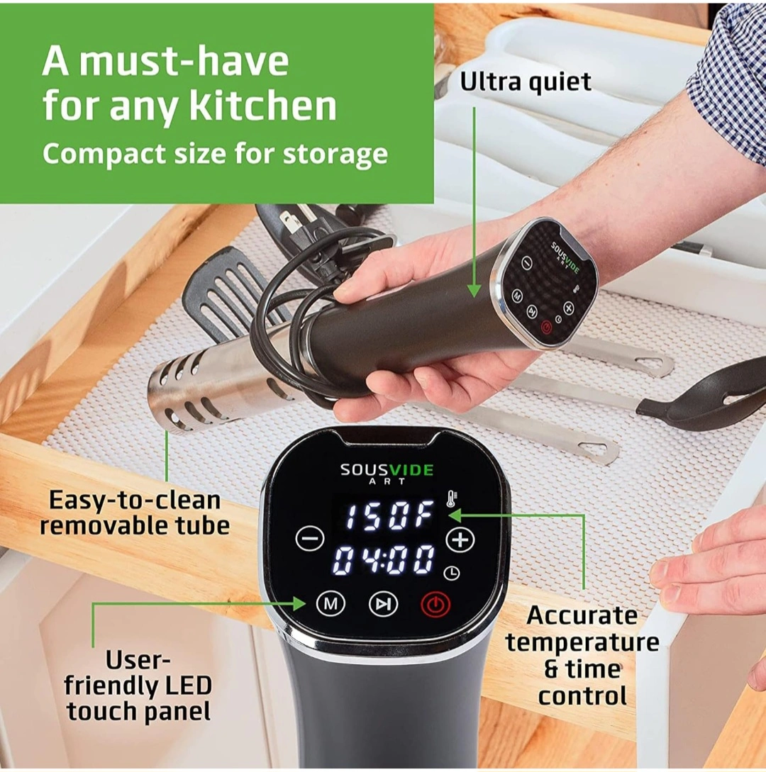 10SOUSVIDE ART Sous Vide Precision Cooker Kit - 800W Immersion Circulator with Timer and Temperature Control - Includes 17 Vacuum Bags, Pump, and Cookbook for Home Cooking