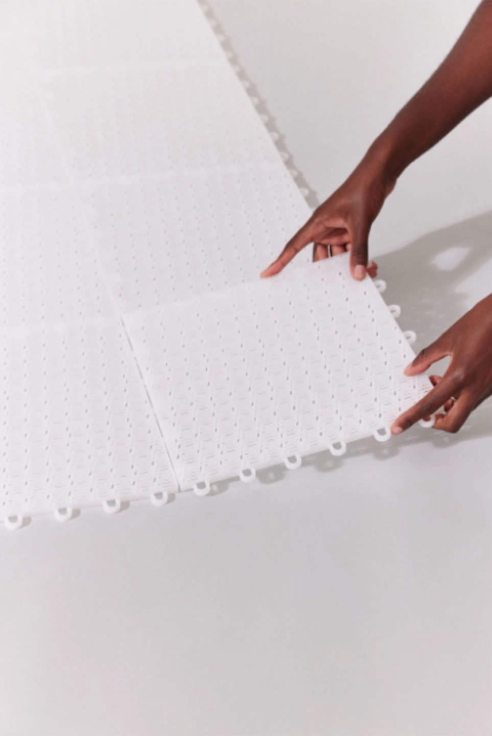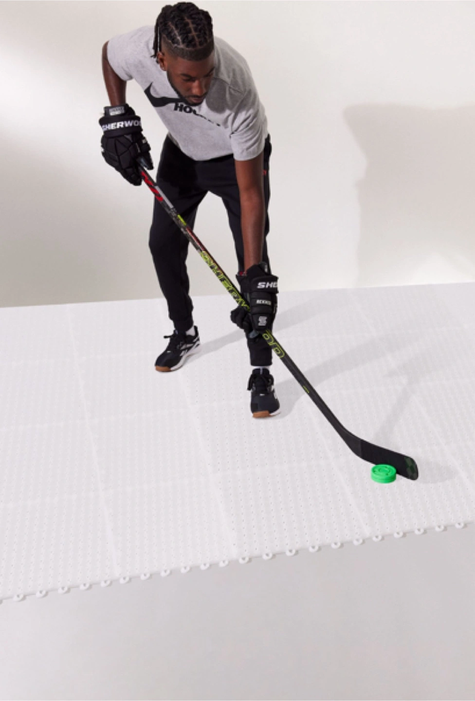 Sherwood Hockey Tile - Sets of interlocking plastic floor tiles. Great for hockey practice or other indoor sports. Easy to assemble and disassemble. White colour. 81 tiles available. Each set of 12 can be purchased separately. $20 per set of 12. Pick up at Eglinton Ave east at Bayview.