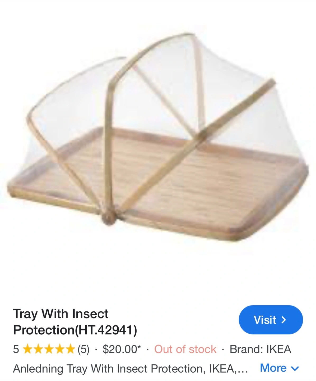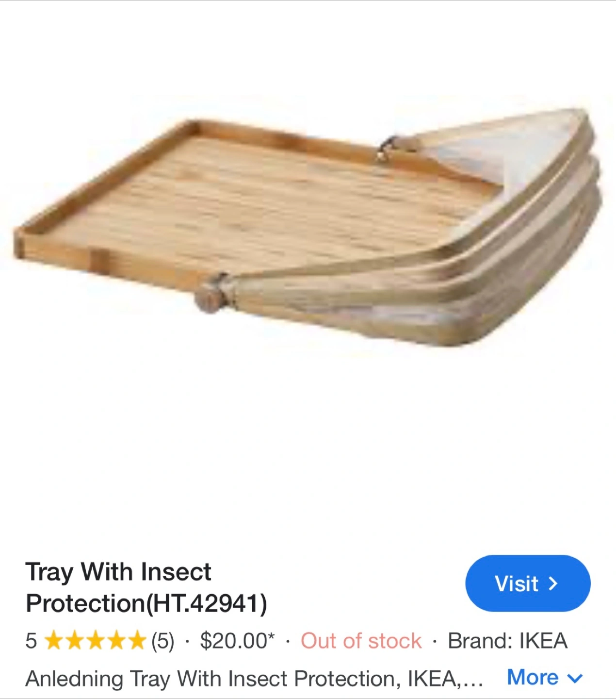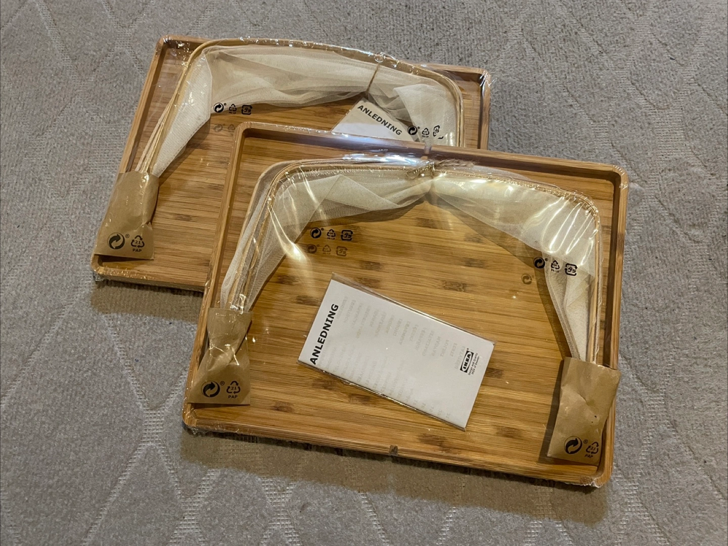 42Two brand new IKEA Anledning trays with insect protection. Bamboo tray with foldable mesh cover. Perfect for picnics or keeping food safe outdoors.
