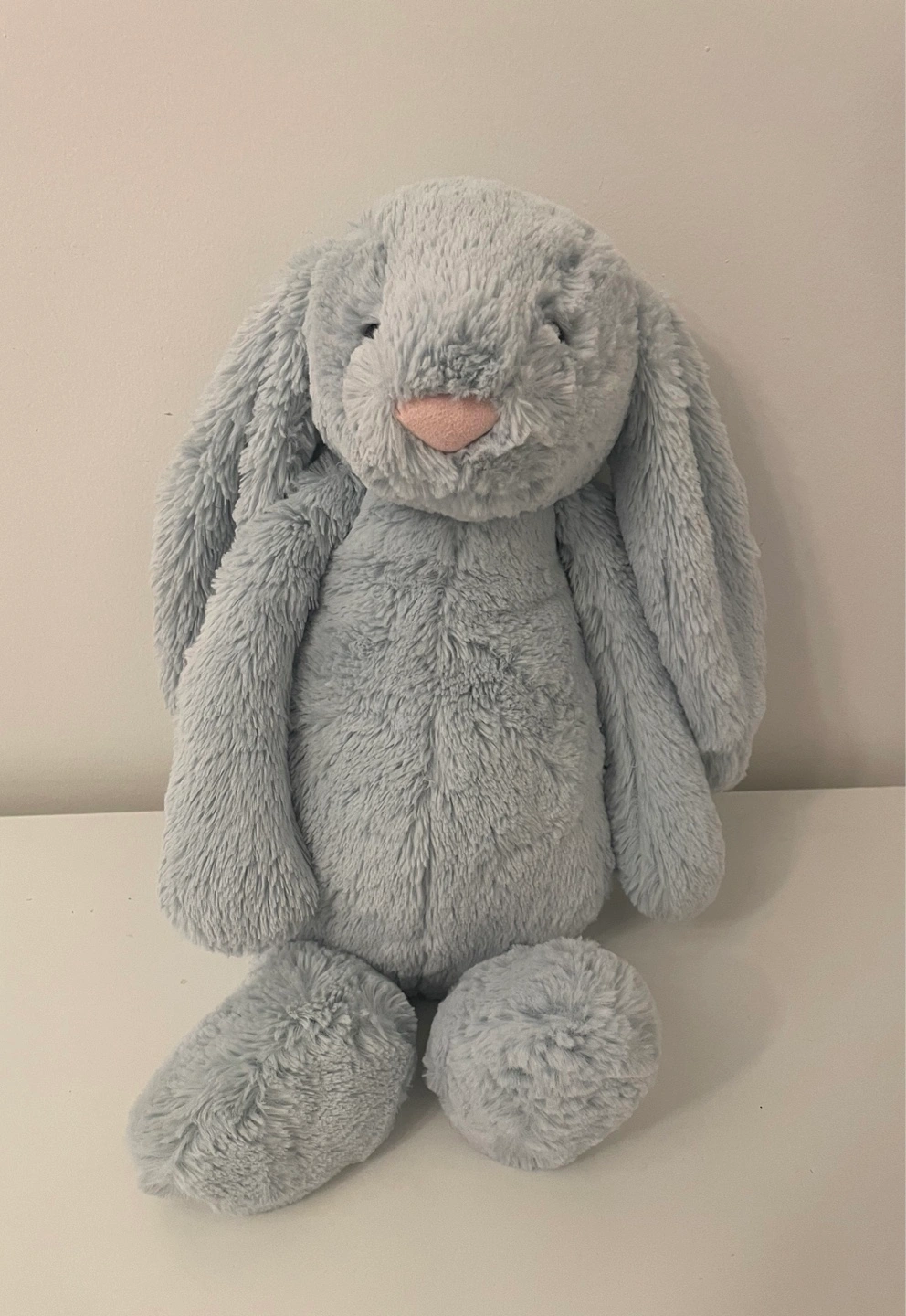 Adorable light blue Jellycat Bashful Bunny. Soft plush material. Great for cuddling or collecting.