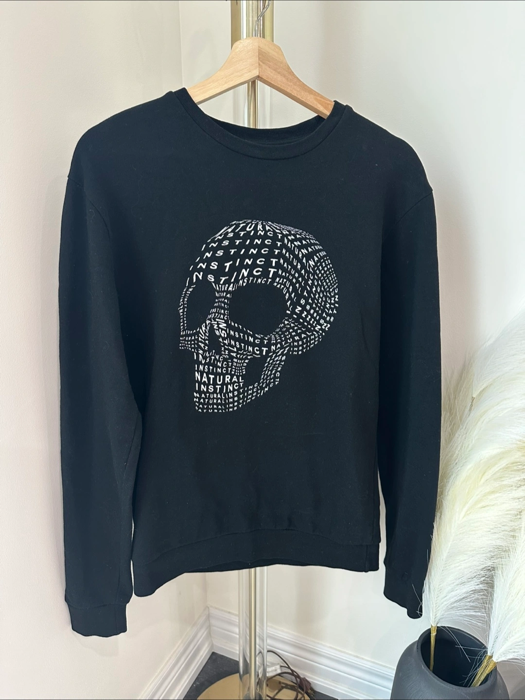 Black sweatshirt with skull graphic. Long sleeves. Size medium or 40. Made in Turkey.
