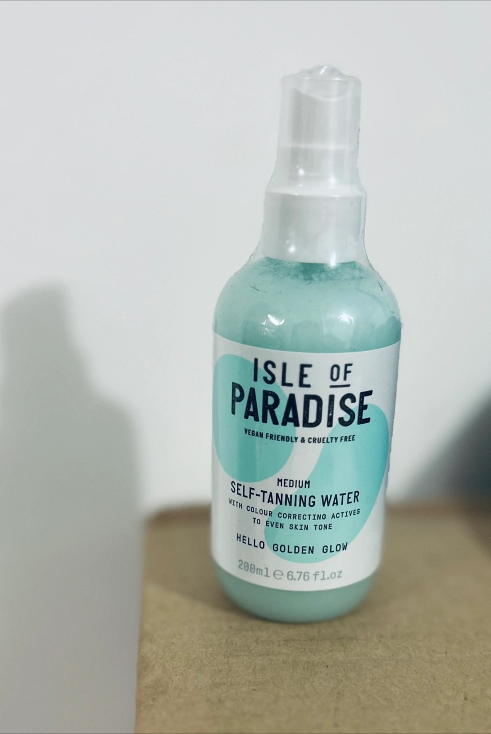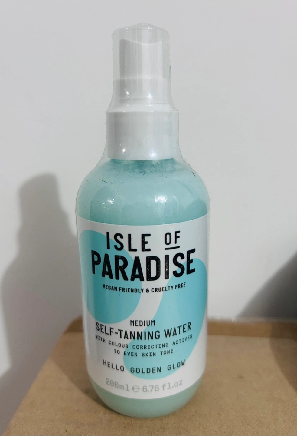 Self-tanning water in medium shade. Vegan friendly and cruelty free. Never used still has the wrapper