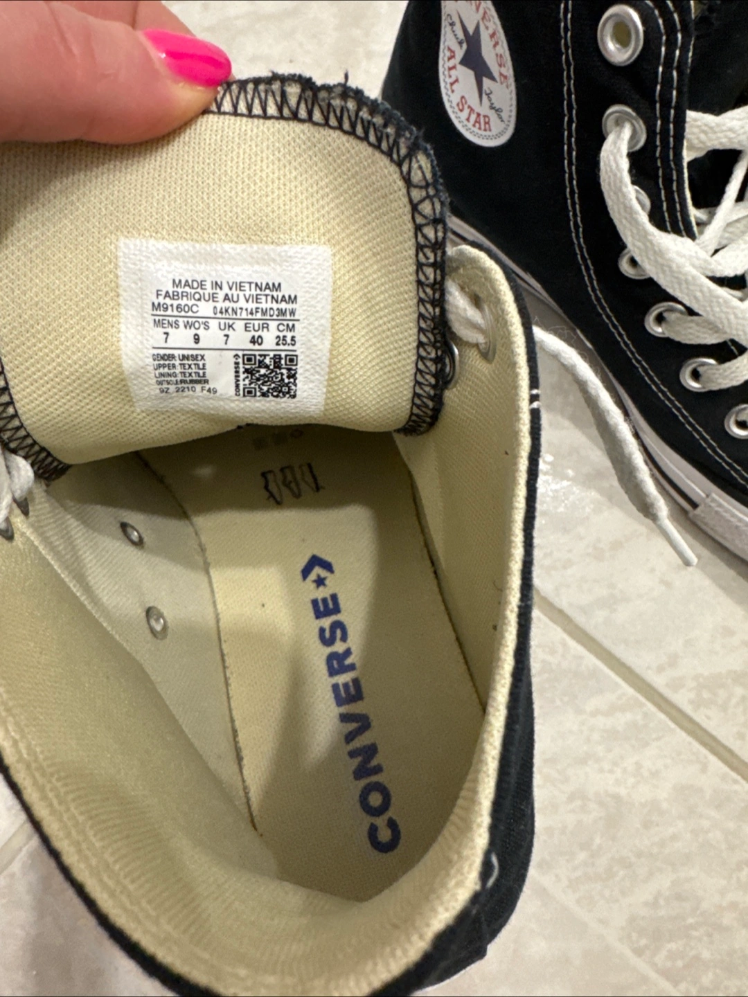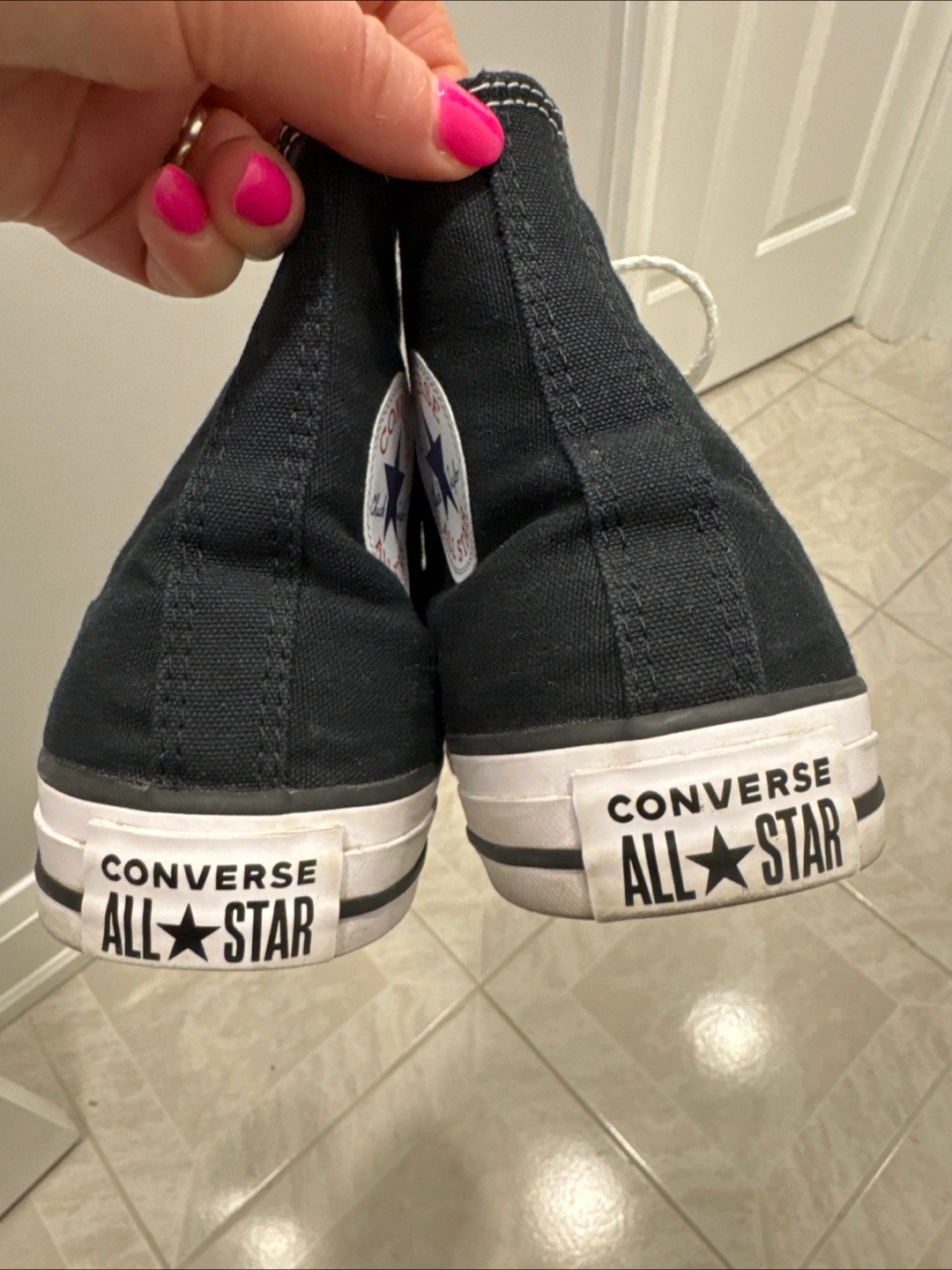 Black canvas Converse All Star high top sneakers. Men's size 7 . White laces. Made in Vietnam. Used only twice for Hip hop dance.