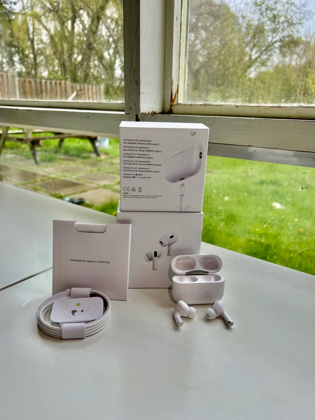 They're in brand new condition and come with all original accessories, including the box, charging cable, and extra ear tips.