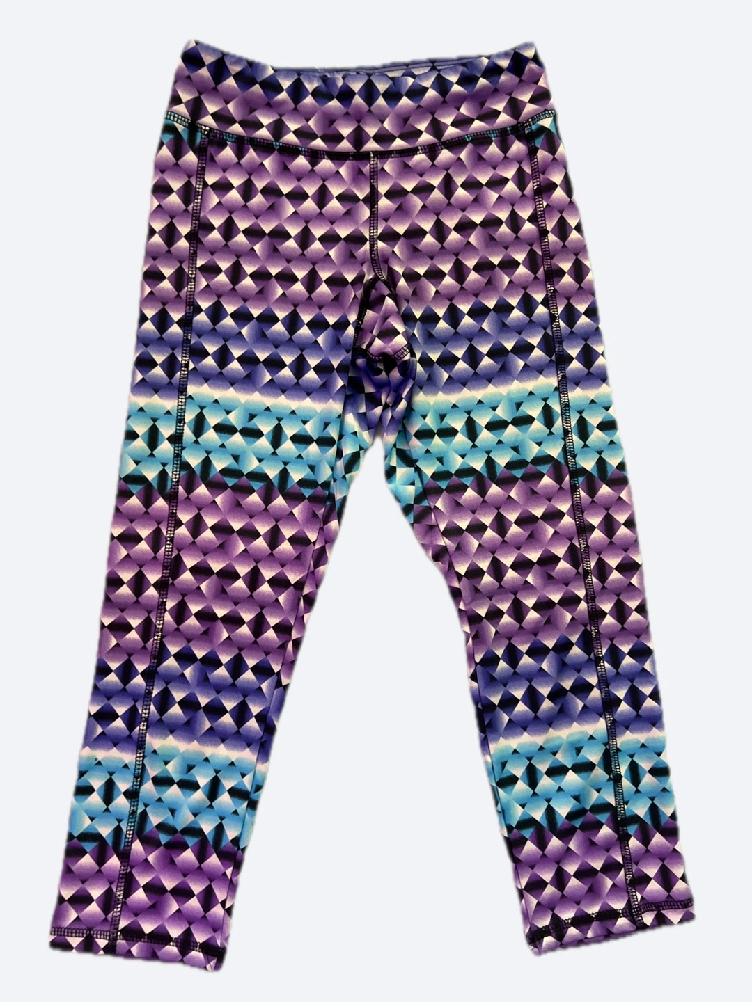 Purple, blue and white geometric pattern. Excellent condition.