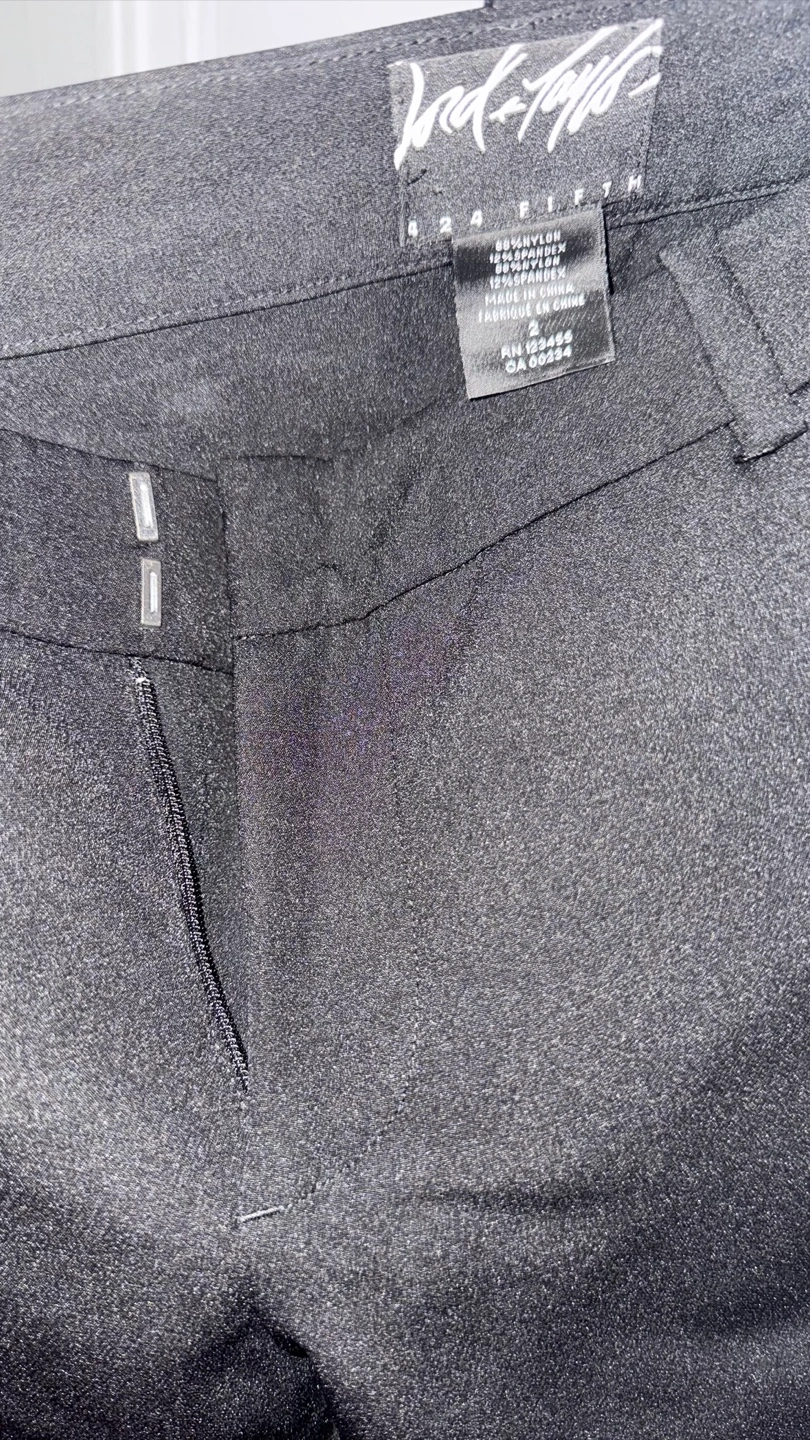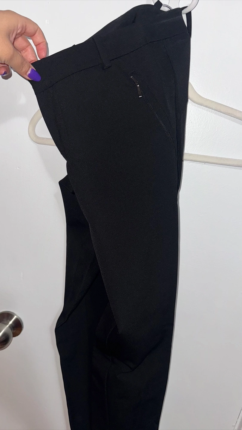 114Black dress pants. Size 6. Zip fly. Good condition. Fabric content shown in images.