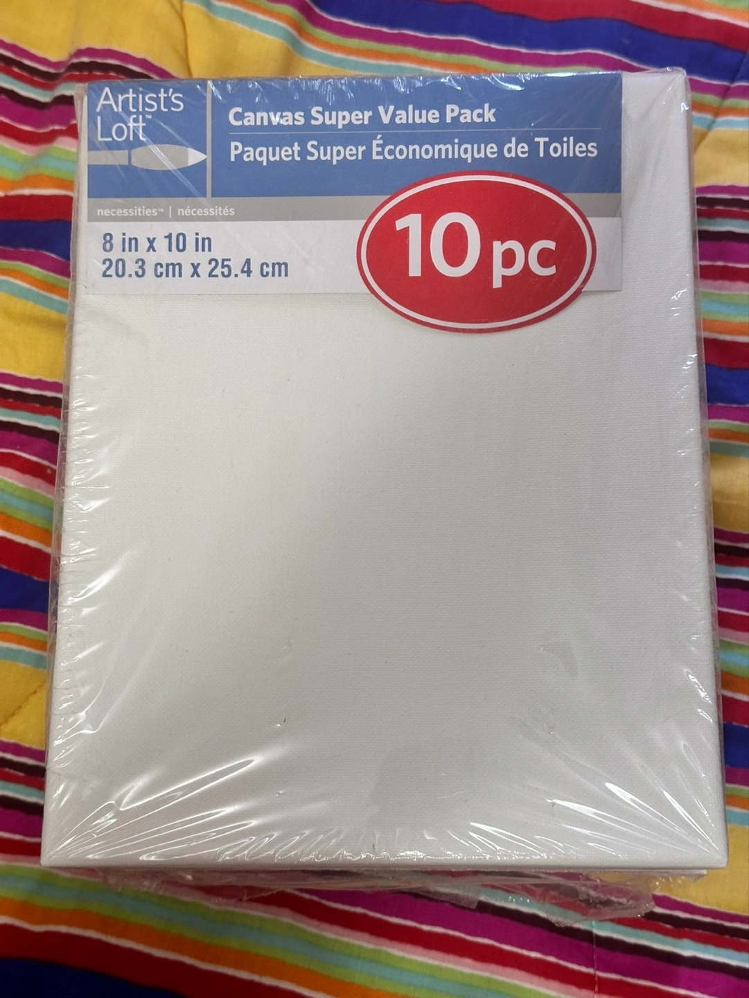 10-pack of 8x10 inch canvases. Perfect for painting projects. New in package, unwanted and taking up space in my home.