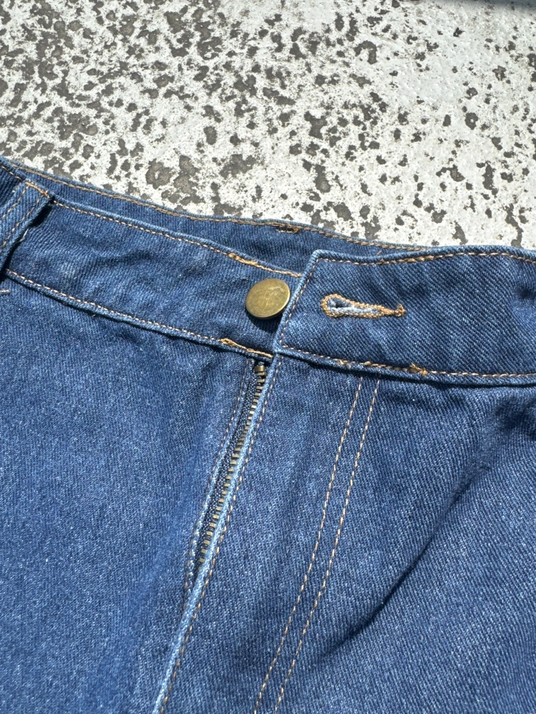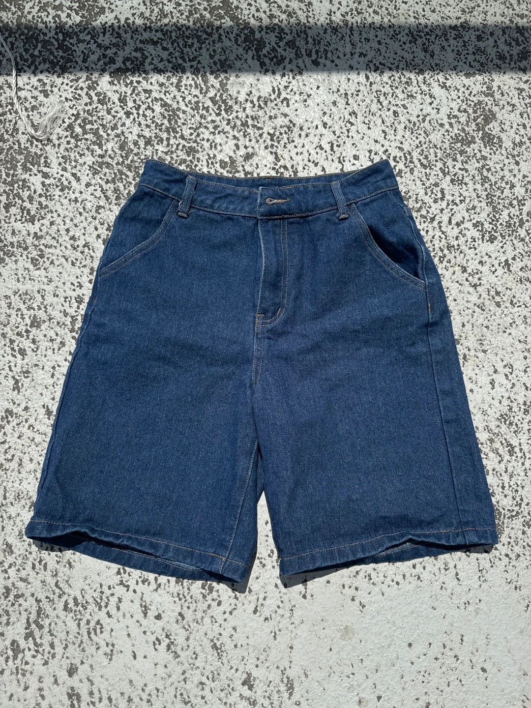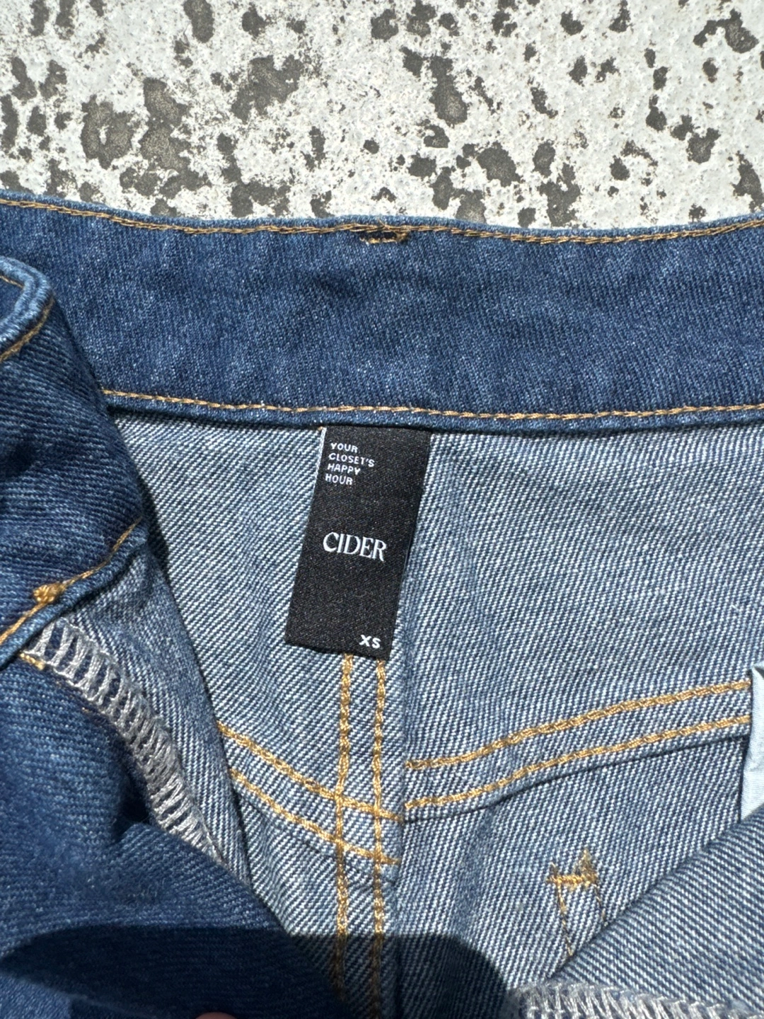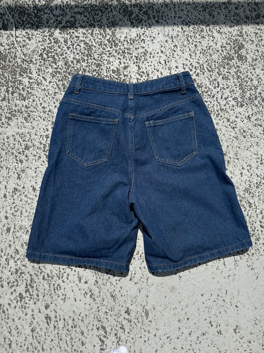 224Dark wash denim shorts. Size extra small. Classic five-pocket style. Button and zipper closure.