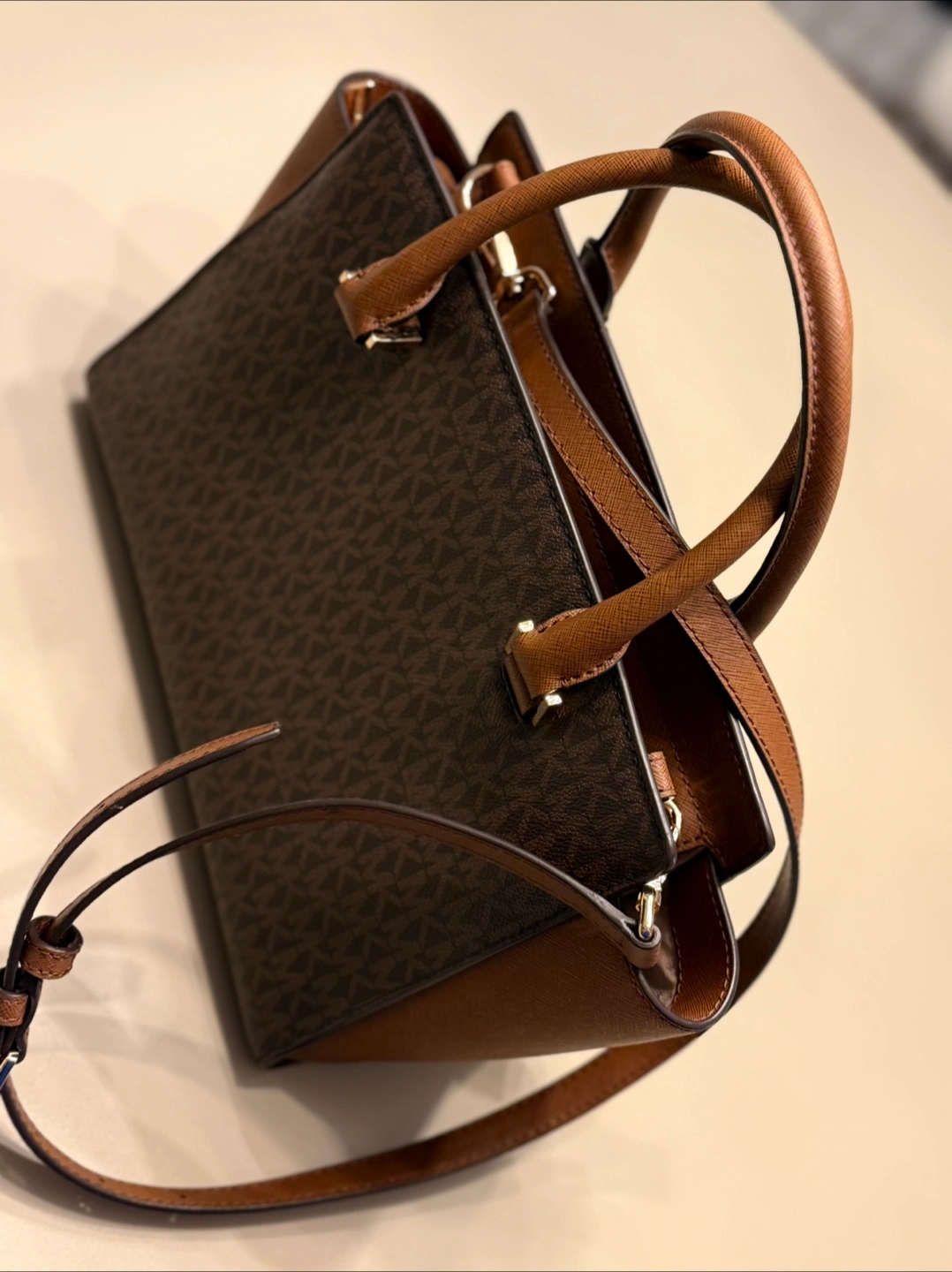 Buy & SellMichael Kors Brown satchel handbagMichael Kors Brown satchel handbag$90Brown and dark brown MK logo satchel. Features two top handles and a detachable shoulder strap. Gold-toned hardware.ConditionLike newBrandMichael KorsWHERE TO MEETCheck LocationView MapSELLERverifiedNazaninDon Mills903 reviews1 chats·2 favorites·102 viewsSEND CHAT TO SELLERHi Nazanin! I’m interested in your listing.Hi Nazanin! I’m interested in your listing.Get the Karrot app to chatSign In to chat