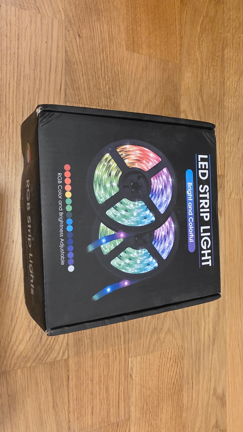RGB colour and brightness adjustable LED strip lights. Indoor use only. Connect carefully. Bright and colourful.