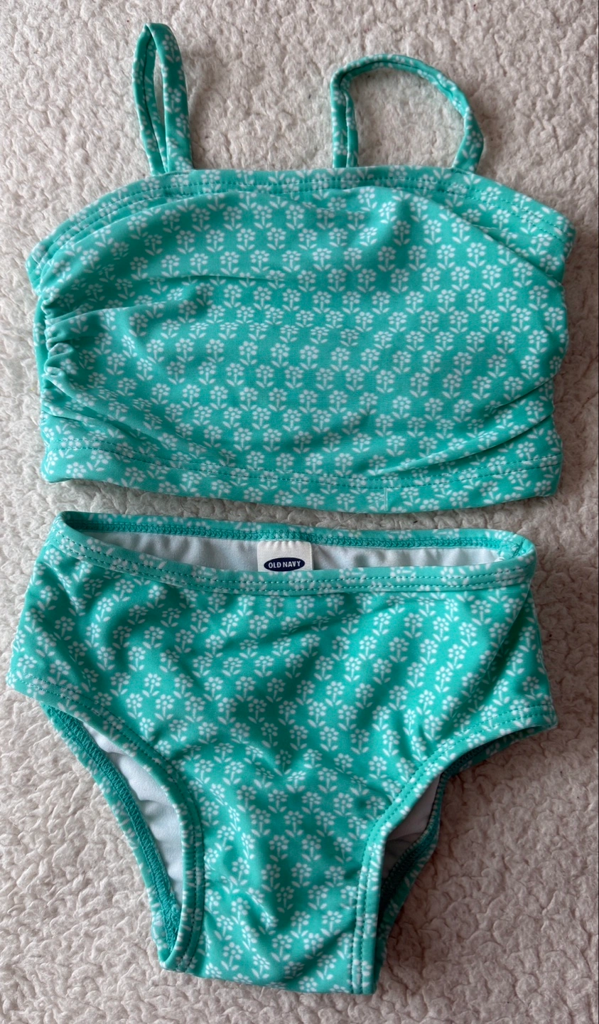 201Adorable teal and white floral two-piece swimsuit. Size 3-6 months. Perfect for summer fun! For Pick up Cash only