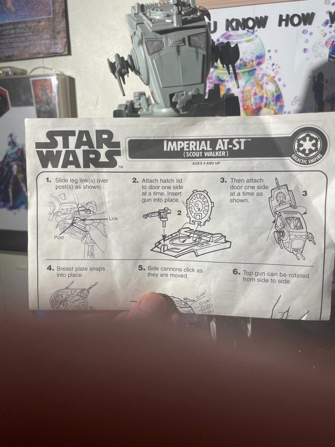 Assembled collectible Star Wars toy. Imperial AT-ST Scout Walker. Great for collectors or enthusiasts. No box but comes with original instructions. Will trade for Star Wars Hot wheels Starships.